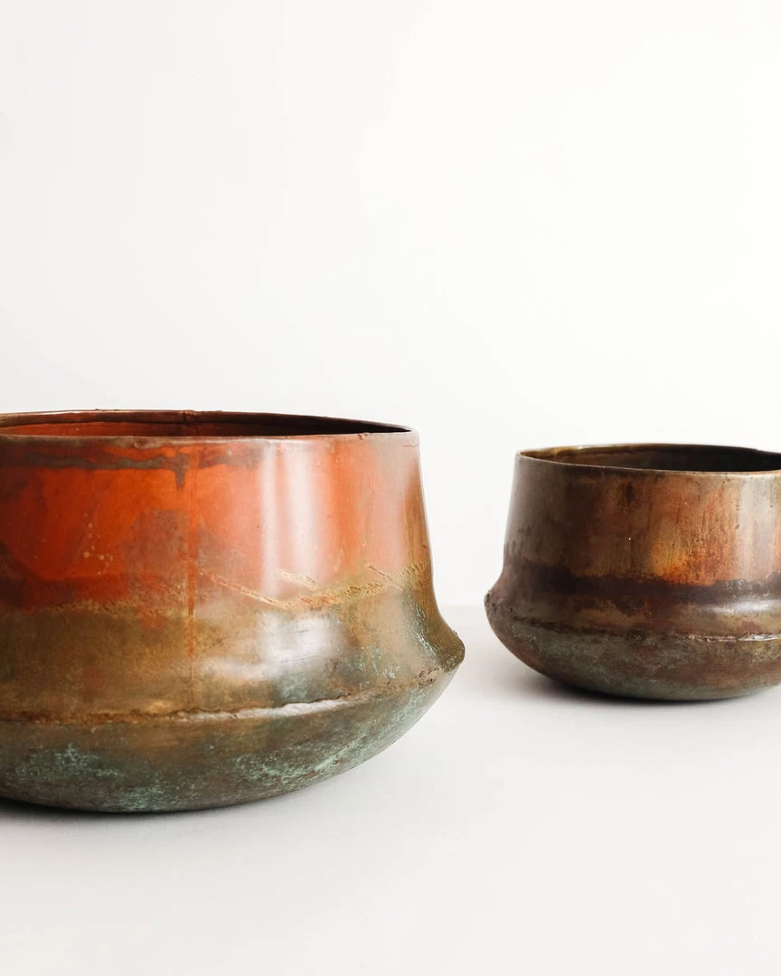 Style your plants and succulents in style. This aged copper planter adds a unique vintage vibe to your home.