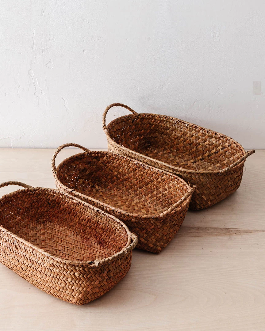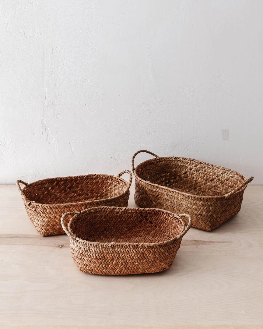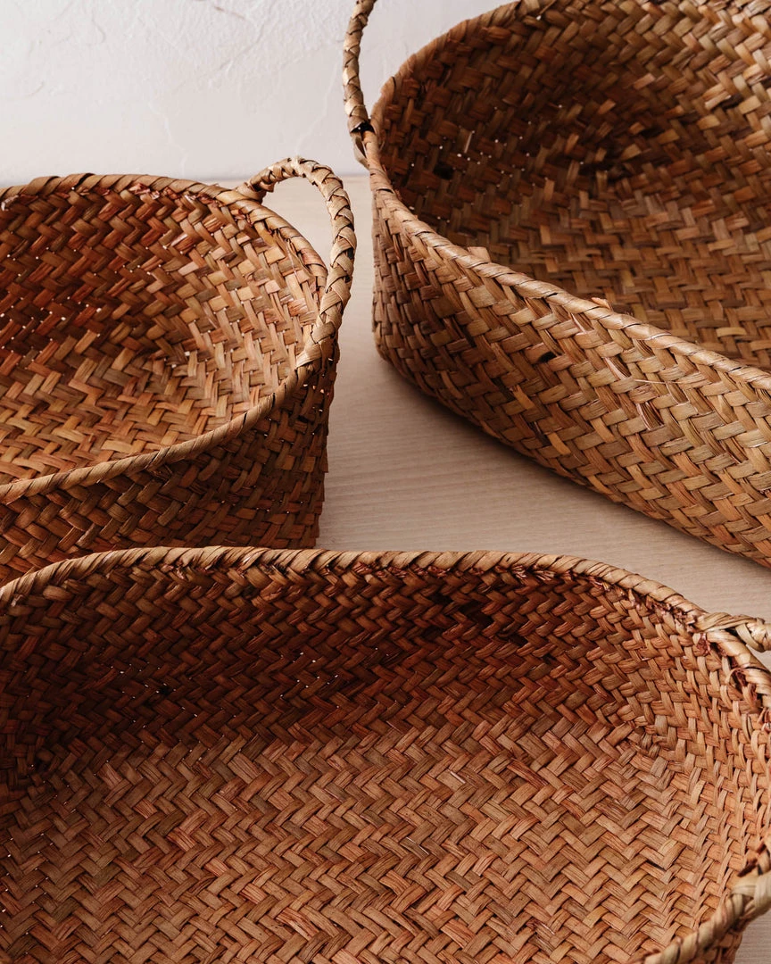 These woven decorative storage baskets are practical and makes a stylish addition for your home decor. Crafted with a metal frame and woven with seagrass, these baskets add texture and warmth to your surroundings.