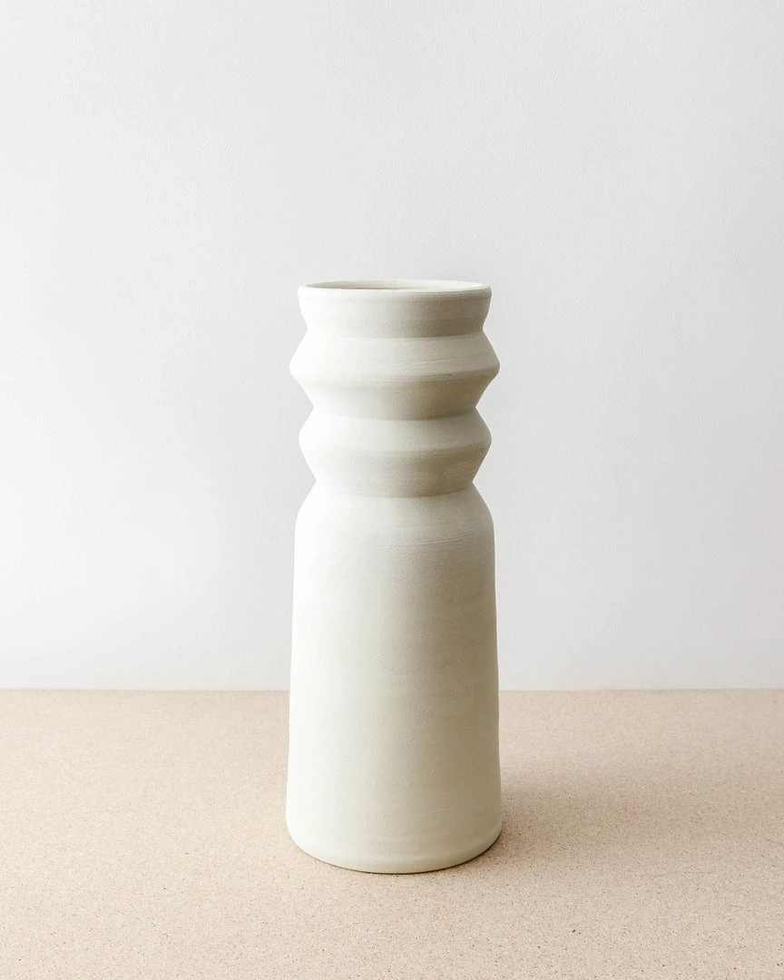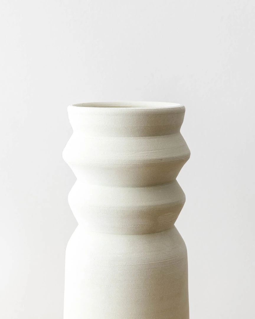 This piece is handmade on the potter’s wheel. It may present workmarks and imperfections that make it unique. Its finish is ceramic with rough texture. Designed for dry florals because it is made in open pore, we do not recommend using it with water.