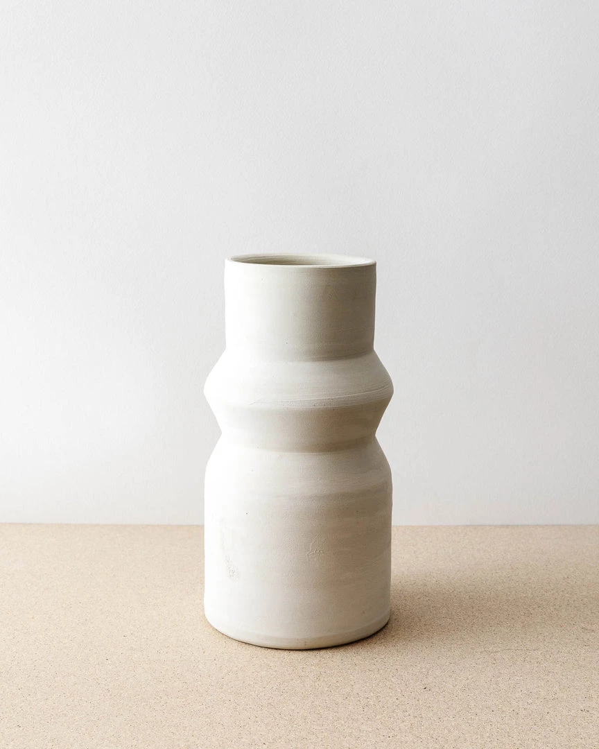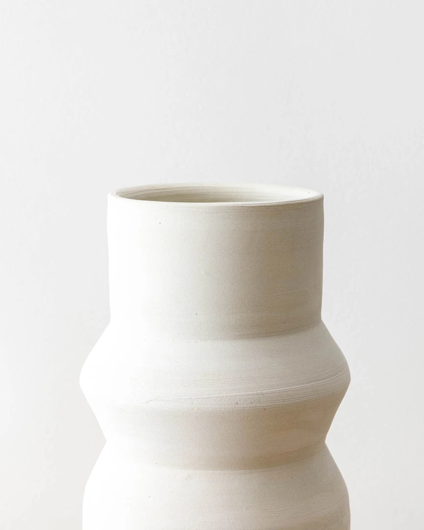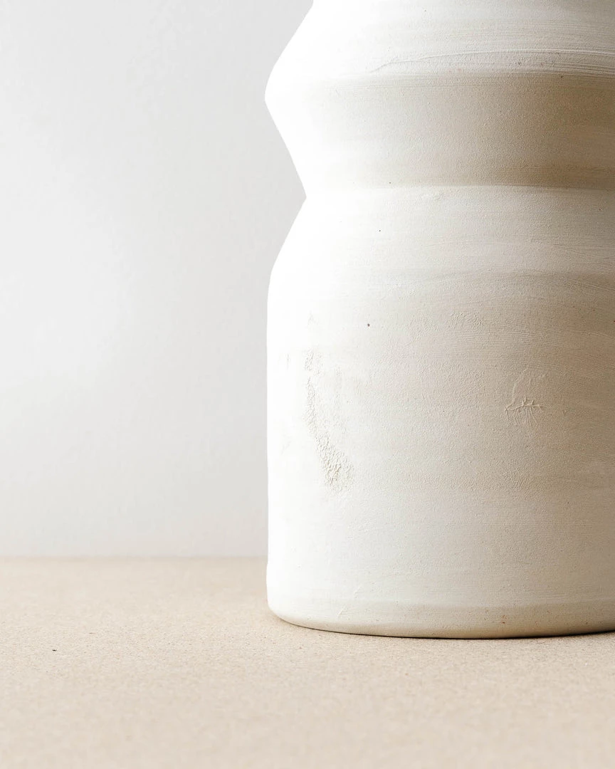 This piece is handmade on the potter’s wheel. It may present workmarks and imperfections that make it unique. Its finish is ceramic with rough texture. Designed for dry florals because it is made in open pore, we do not recommend using it with water.