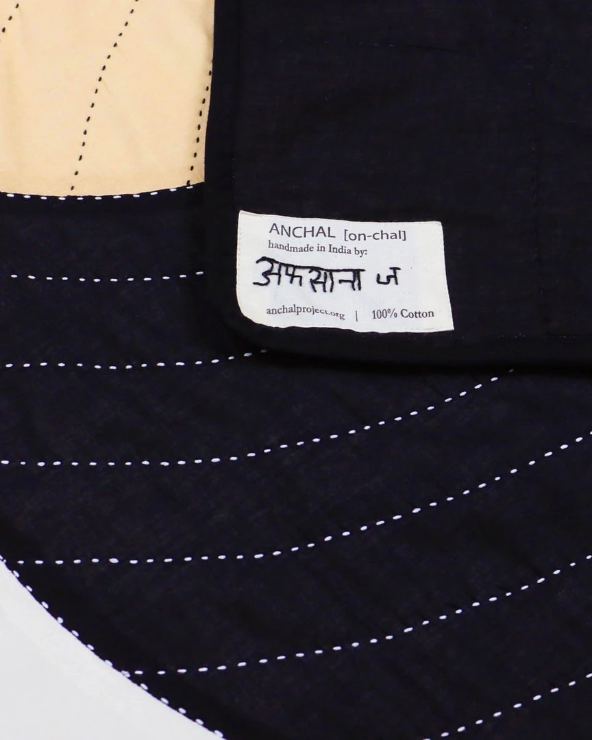 Made by women artisans in India (who are provided with a full-time job, health care benefits, design training, and educational workshops), each quilt is hand-stitched with the artisan’s name.