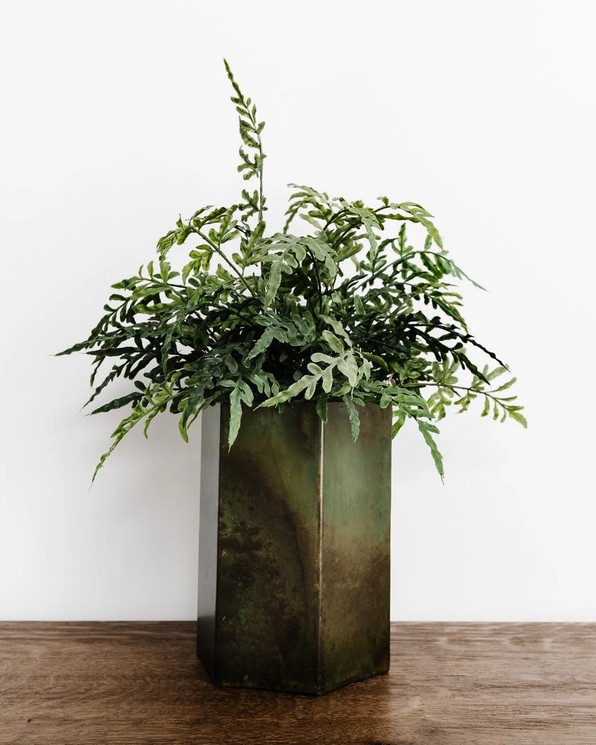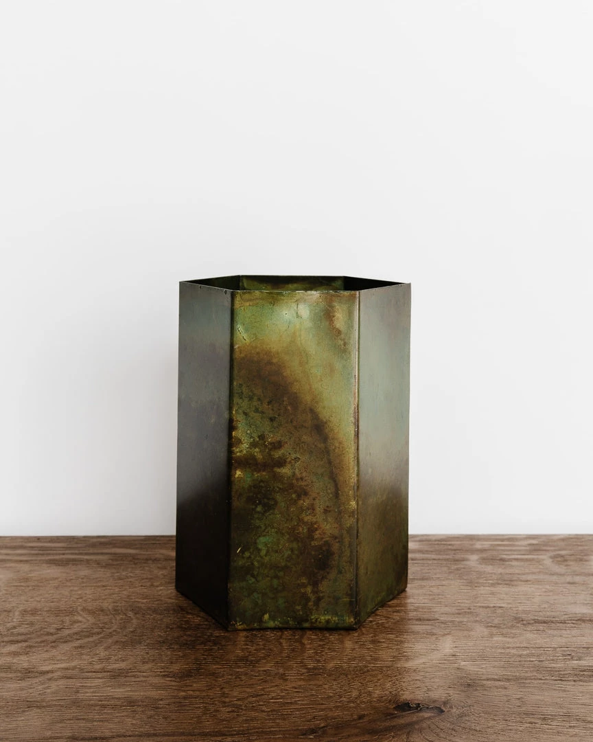 Add a unique vintage touch to your leafy display of greenery. Each planter displays unique patina alongside a distressed finish.