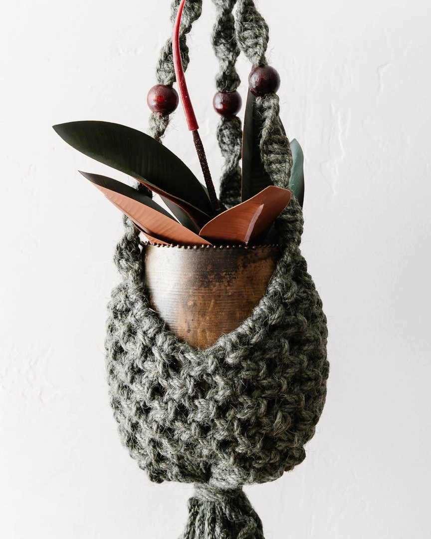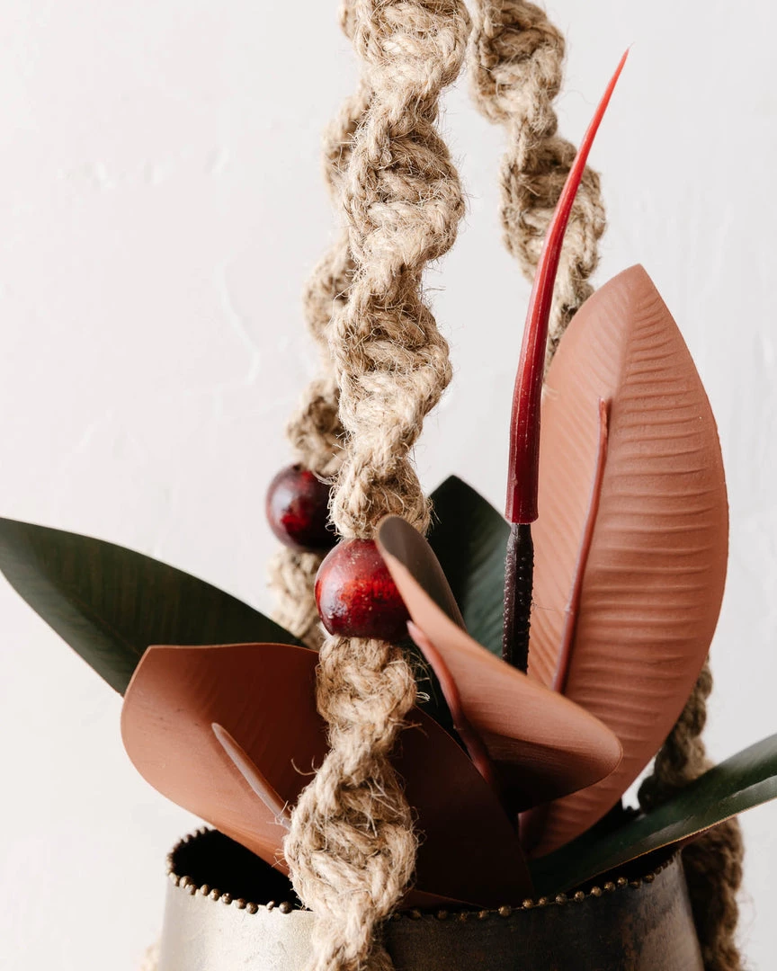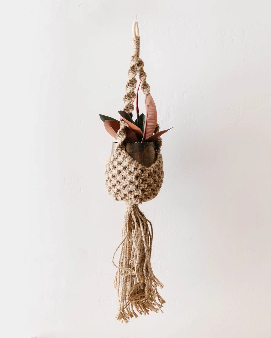 These artistically crafted jute plant hangers are a natural and charming hanging accent for any room. Bring a lively touch of green inside with these artful plant hangers. Hang staggered in height for added interest.