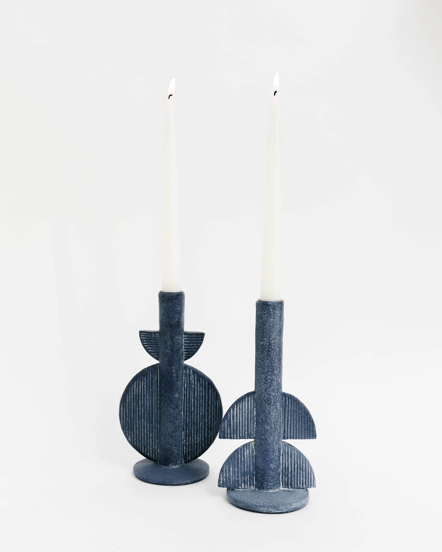 This unique distressed blue finished resin taper candleholder will easily make a stunning yet modern addition to any room or table.