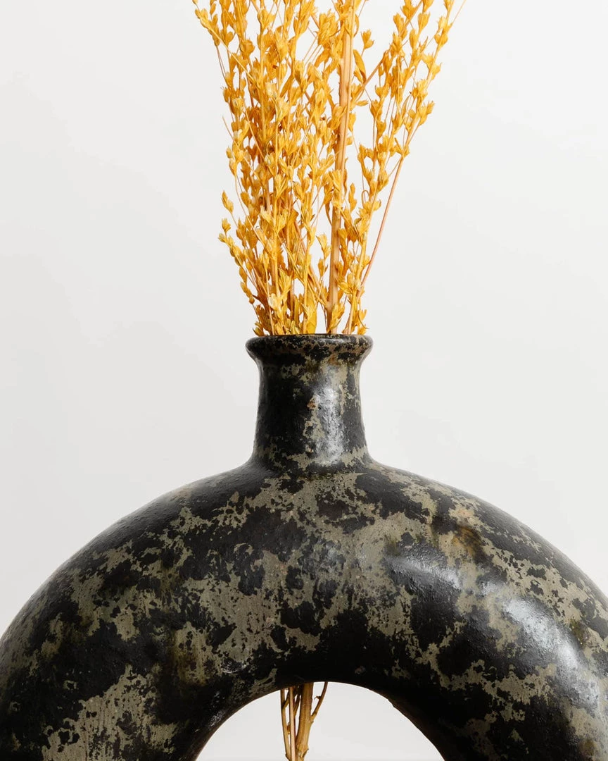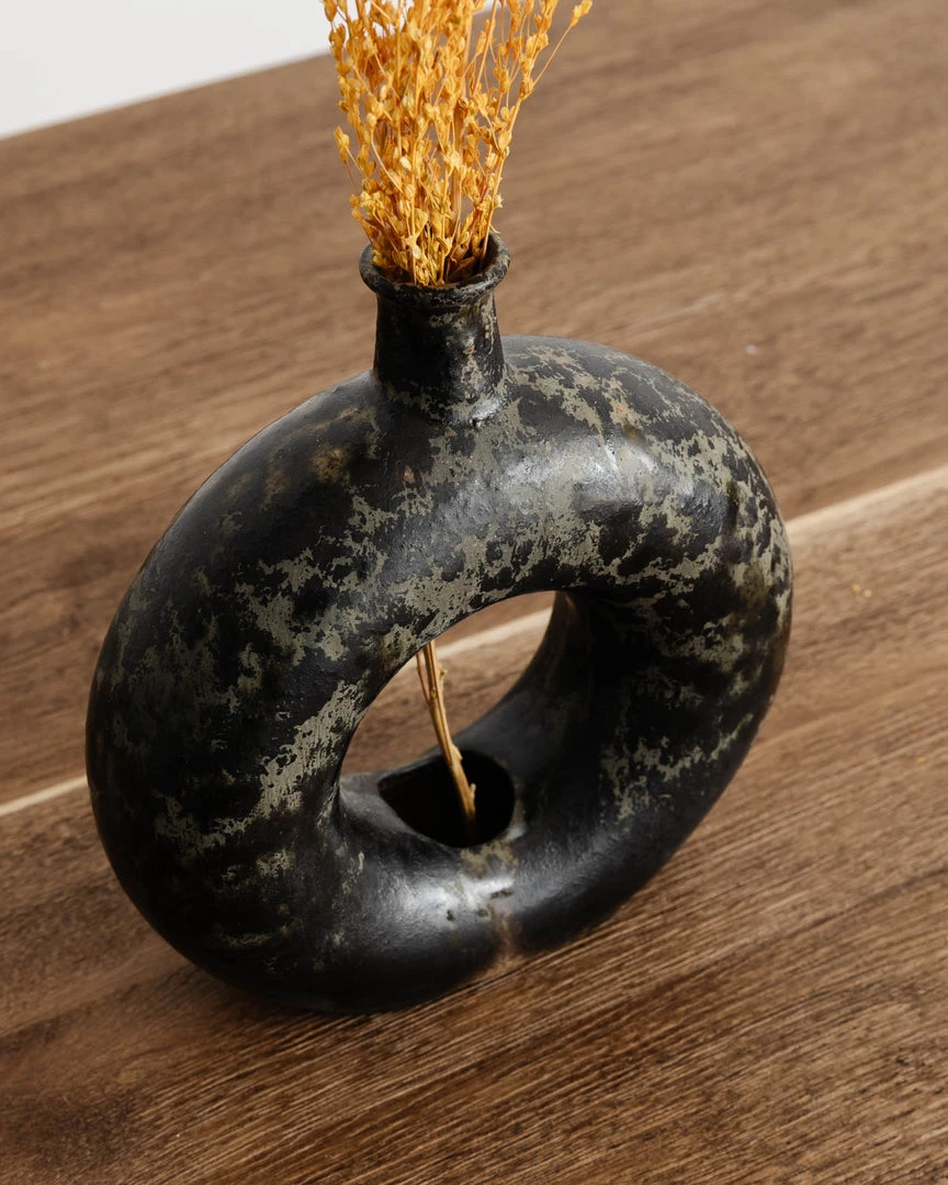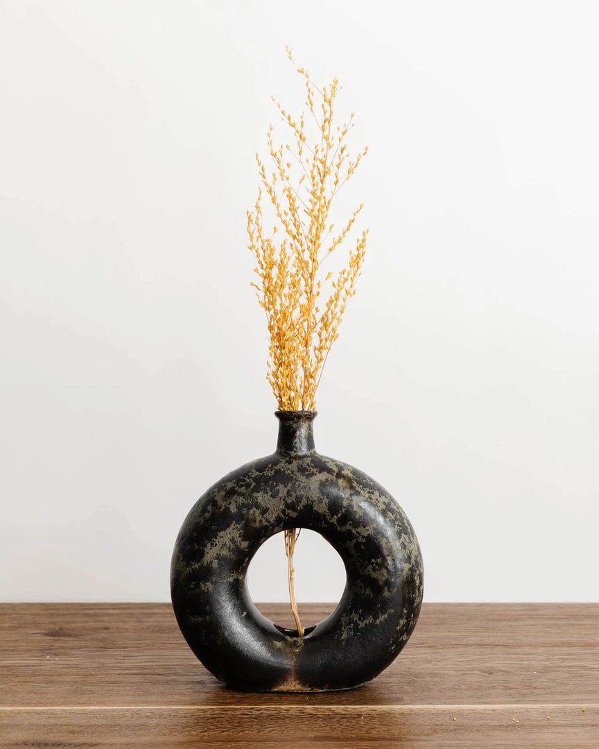 Highlight you table decor with this this simple yet gorgeous circle vase. It’s perfectly sized and looks great styled on a mantel, tabletop or shelf.
