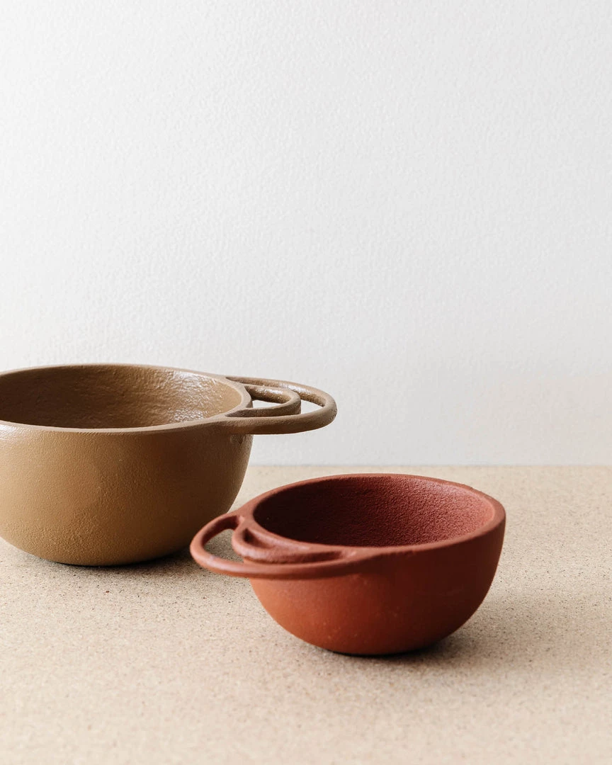 These stunning bowls work great for display or holding small trinkets. Made out of metal and featuring a sleek matte finish texture, these modern bowls look great on shelves or tabletops.