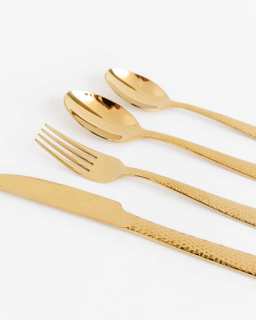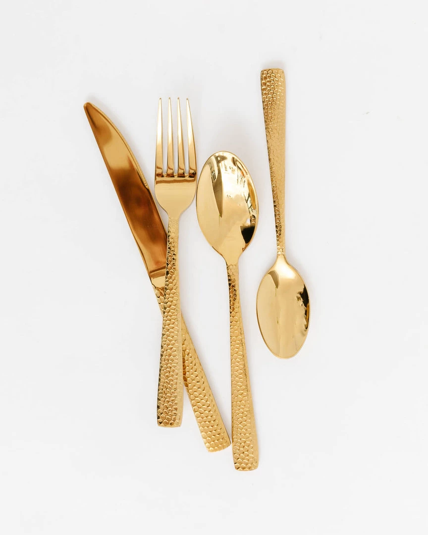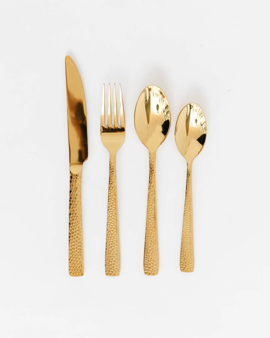 Add some classic charm to your dinner table with this 4 pc set. With its gold finish, this stainless steel flatware set will bring simple yet elegant style to your mealtime.