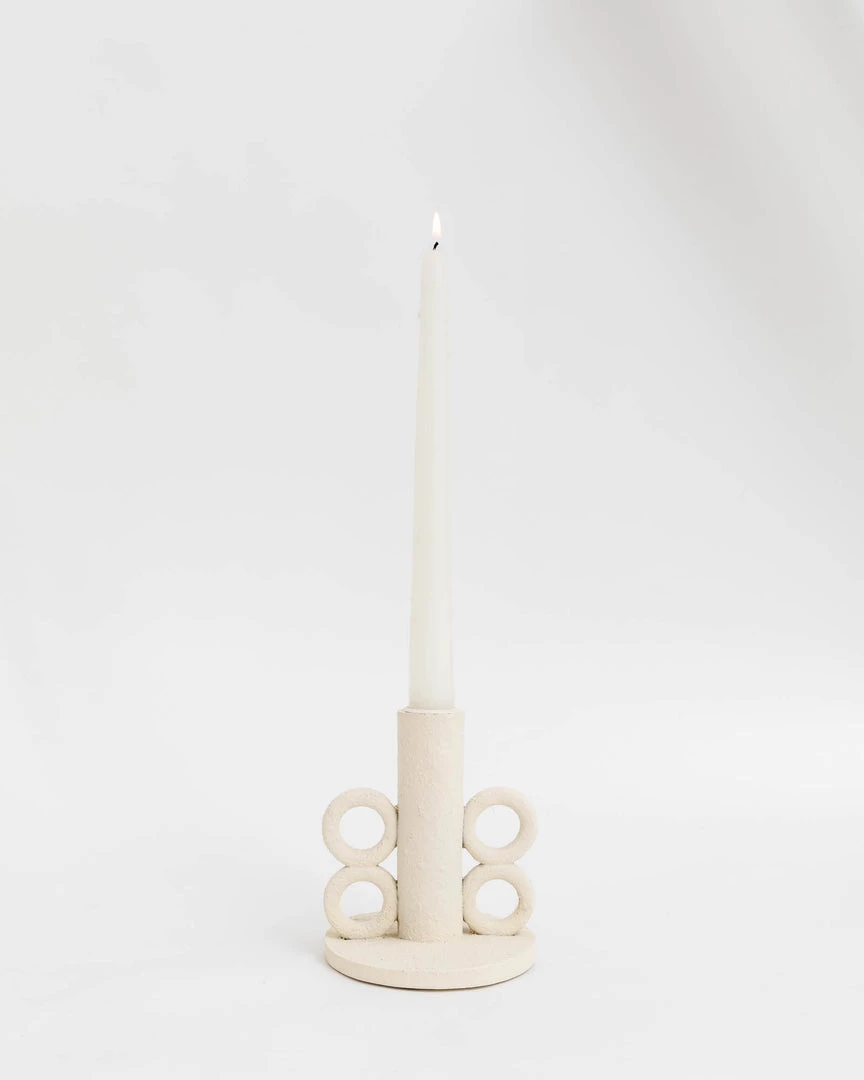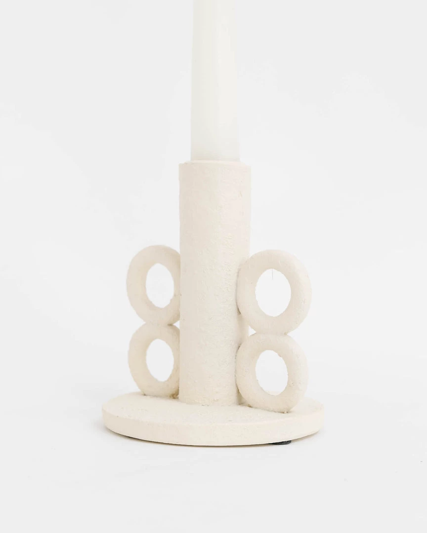 Add some unique charm to your home with this taper holder! Style on your nightstand, end table, or dresser. These uniquely textured tapered candleholders can be used on their own or integrated into a centerpiece.