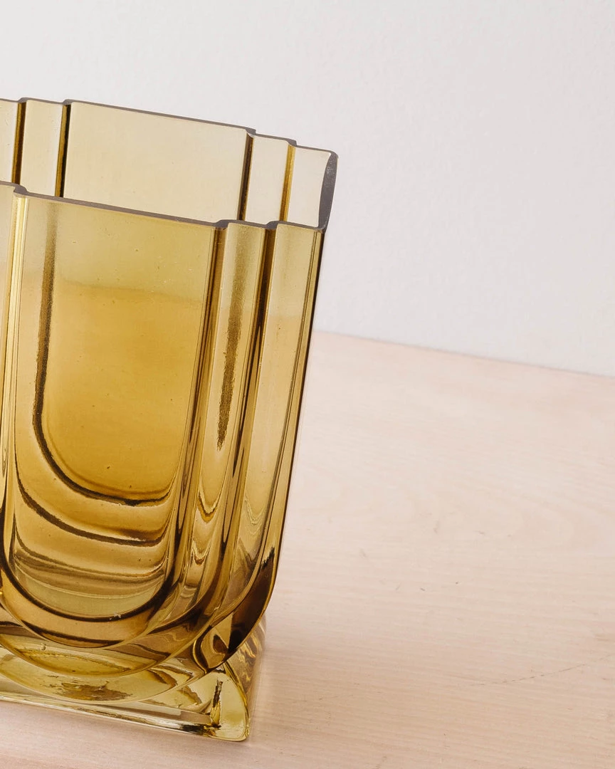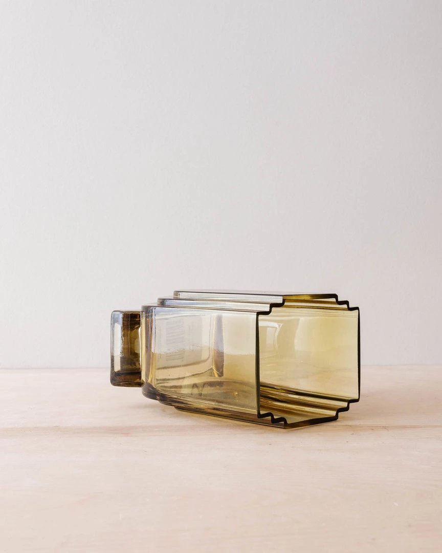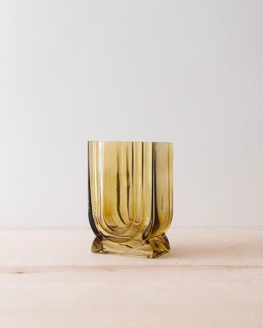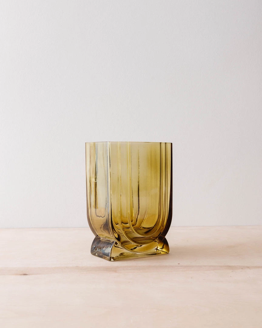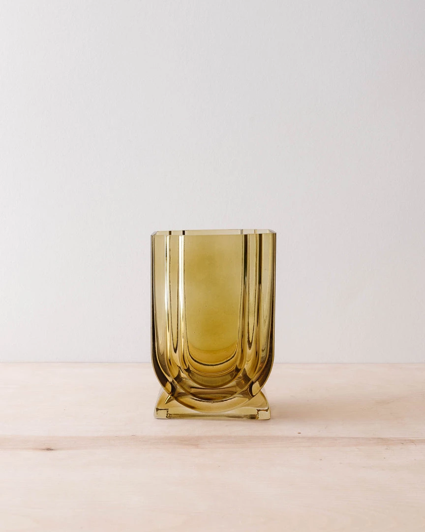 This vase gives is unique enough to style without florals! The art deco shape and green glass elevate this funky silhouette!