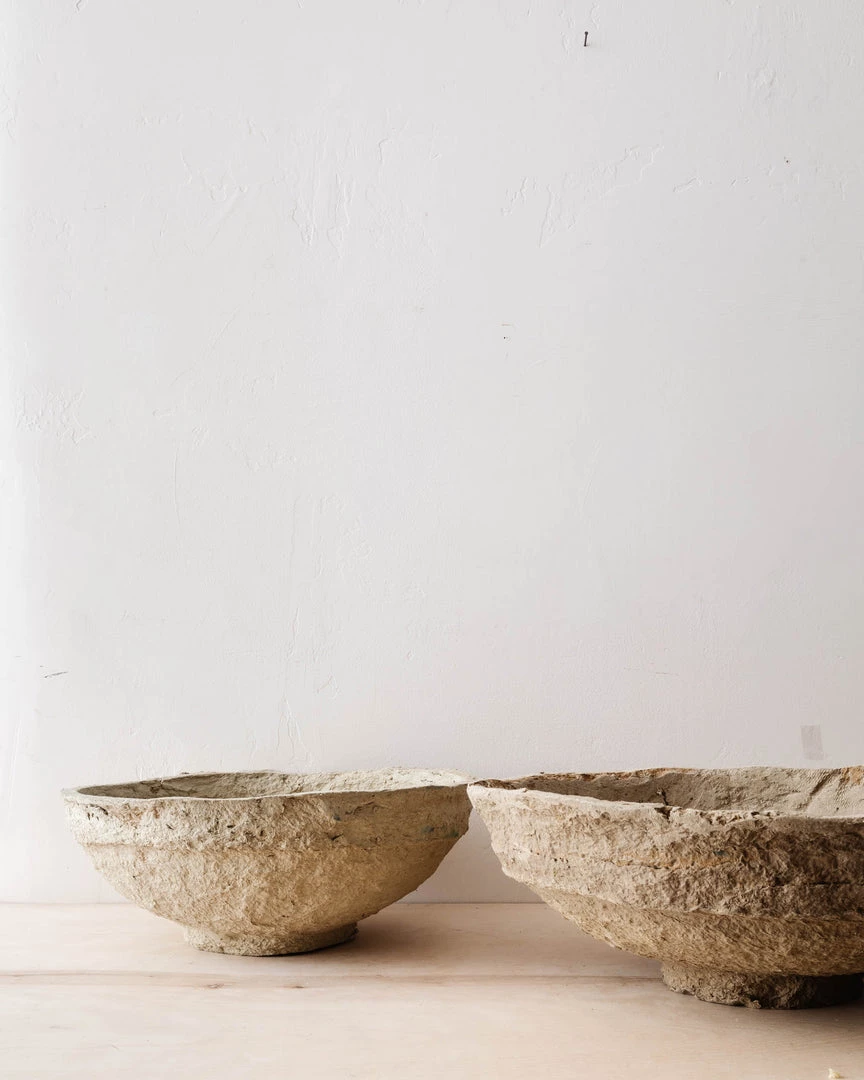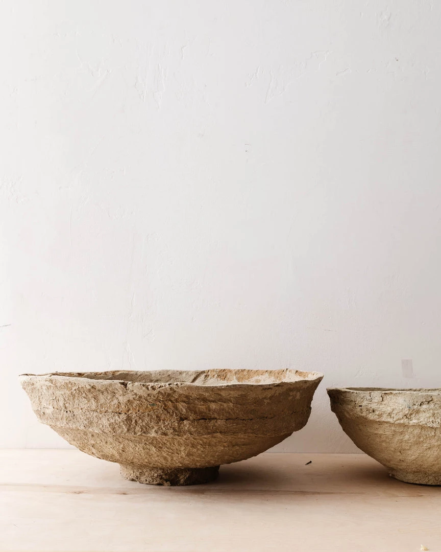 These decorative paper mache bowls are the perfect accent piece you’ll love to display. The natural tone and organic shape lends to the wabi sabi style.