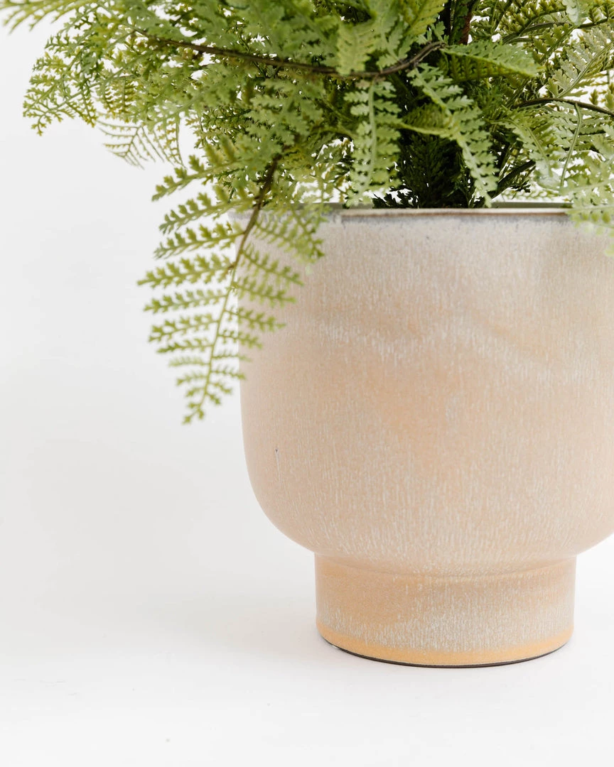This planter is unique in that each one will vary. Its neutral tone will fit in any home and room. Add color with flowers and plants, or place natural grass to leave it subtly beautiful.