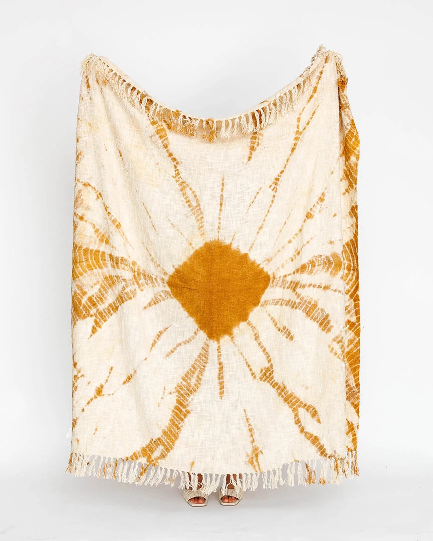 Cozy up in laid-back style with this tie-dyed throw blanket. Showcasing an organic pattern, this throw blanket has a decorative look with the tassels along either side.