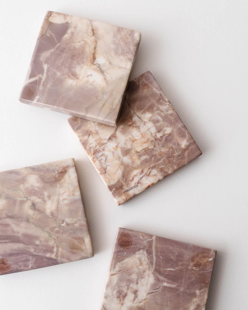 The perfect surface for hot/cold drinks. Natural Brown marbled with tones of pink throughout. Designed to protect and impress.