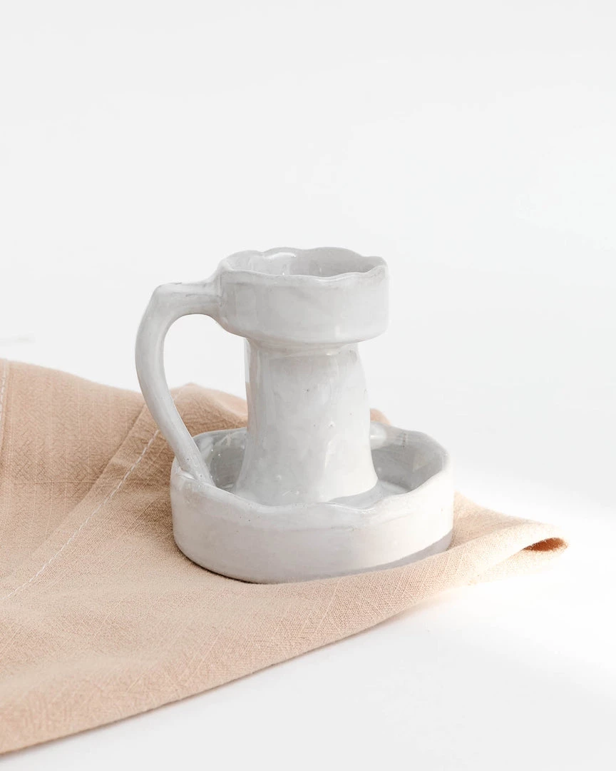 Create a vibe with this tea light holder in terracotta with organic details to add a warm, cozy feel to the home.