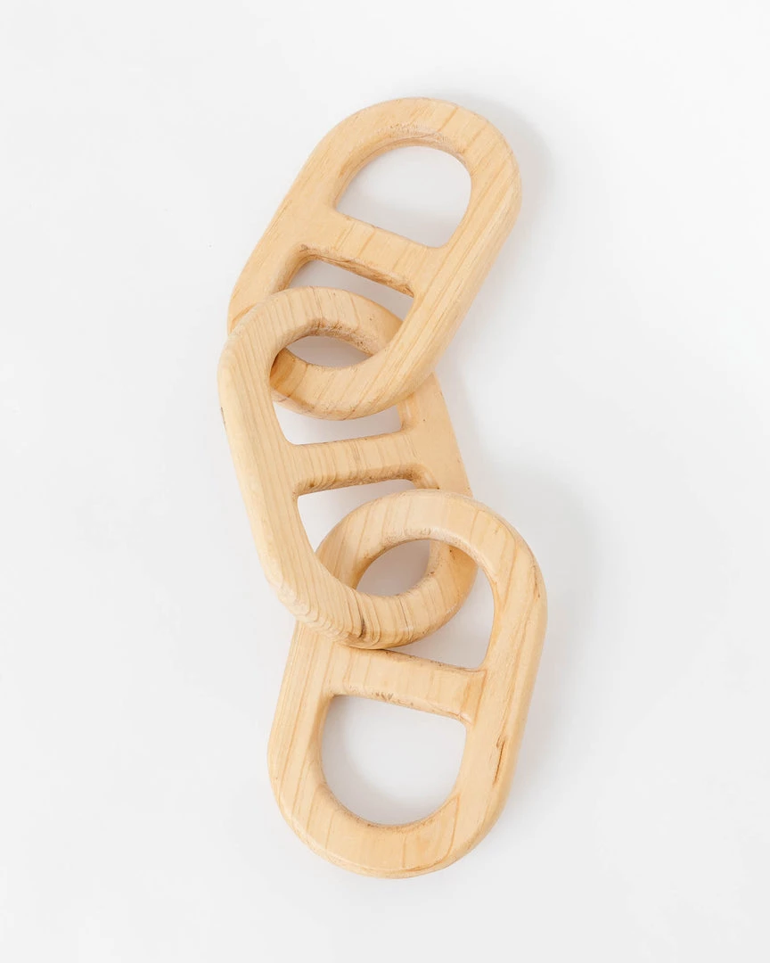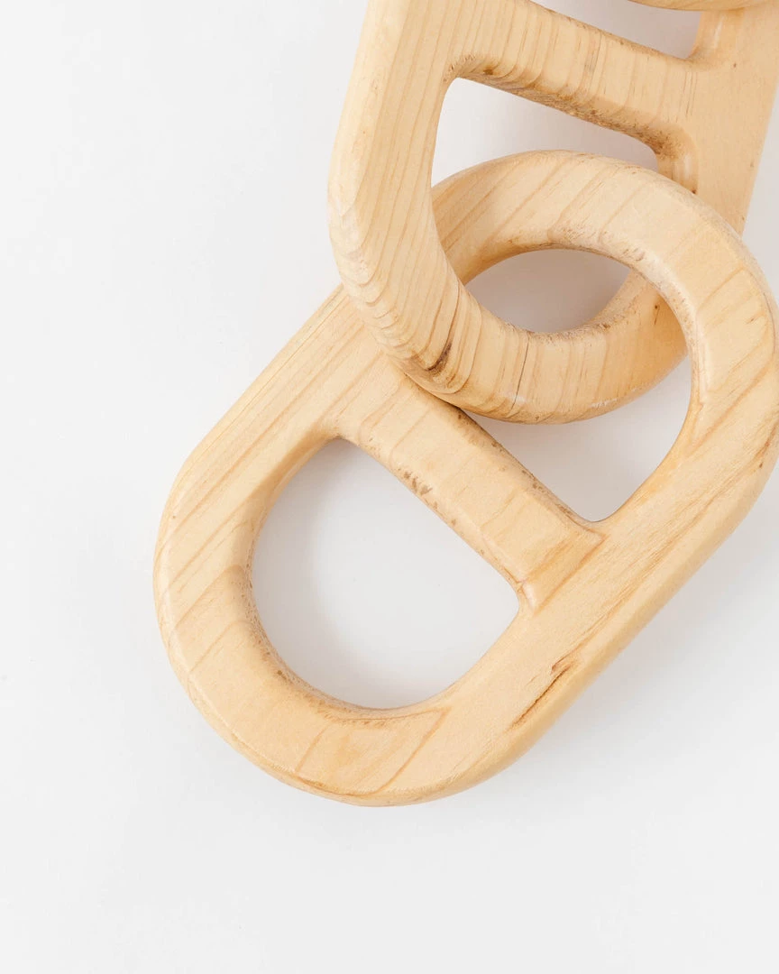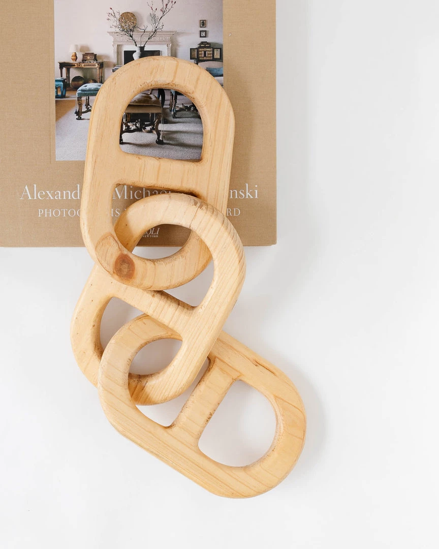 This unique pine wood chain, adds interest and edge to coffee tables, bookshelves, consoles, etc.
