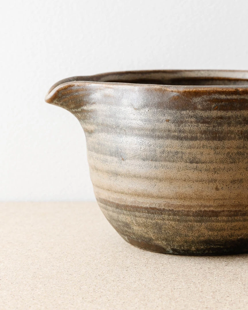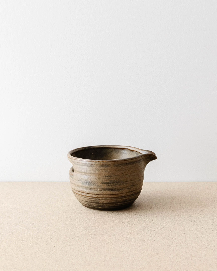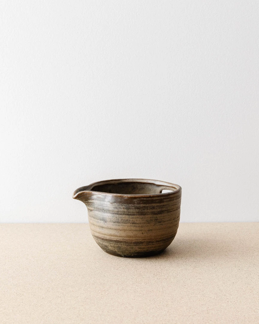 Form meets function in this beautifully made, pour bowl. It has a wide-rim bowl for easy mixing and a shallow spout for easy pouring.