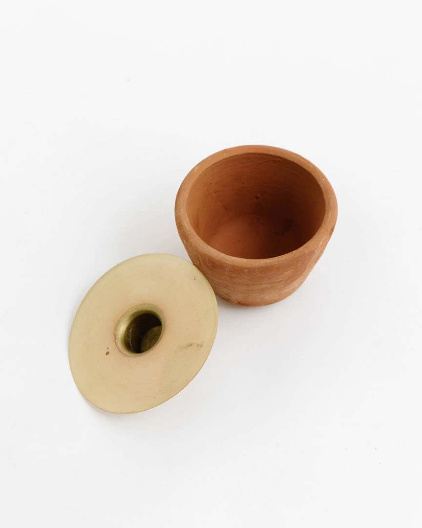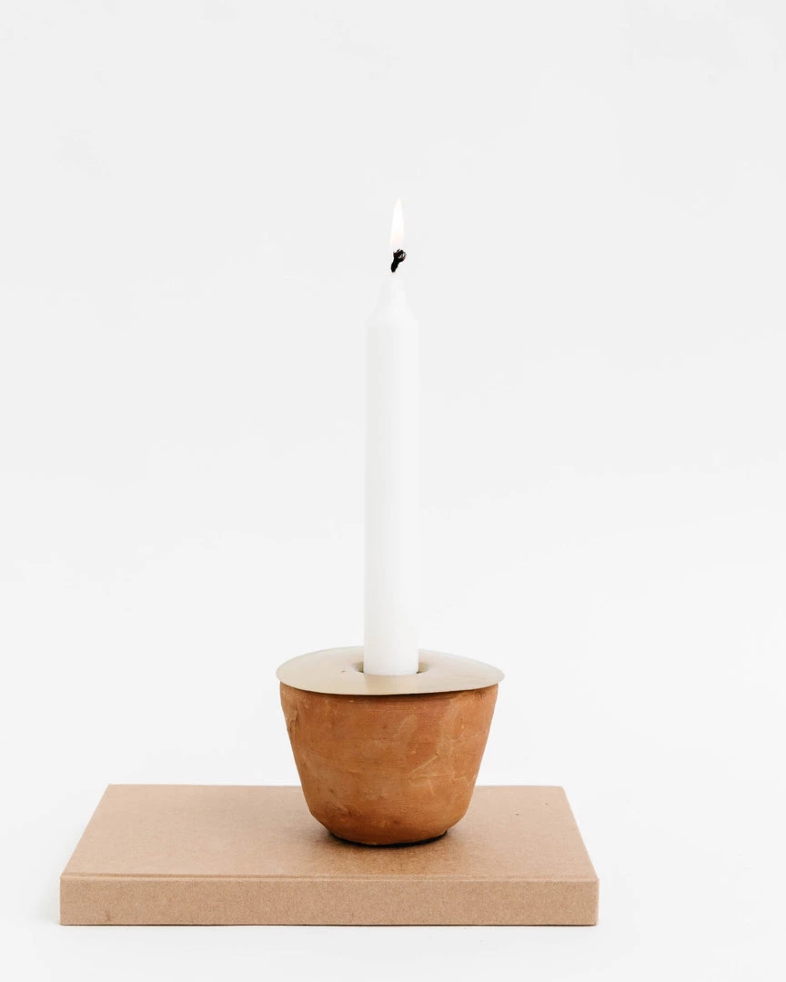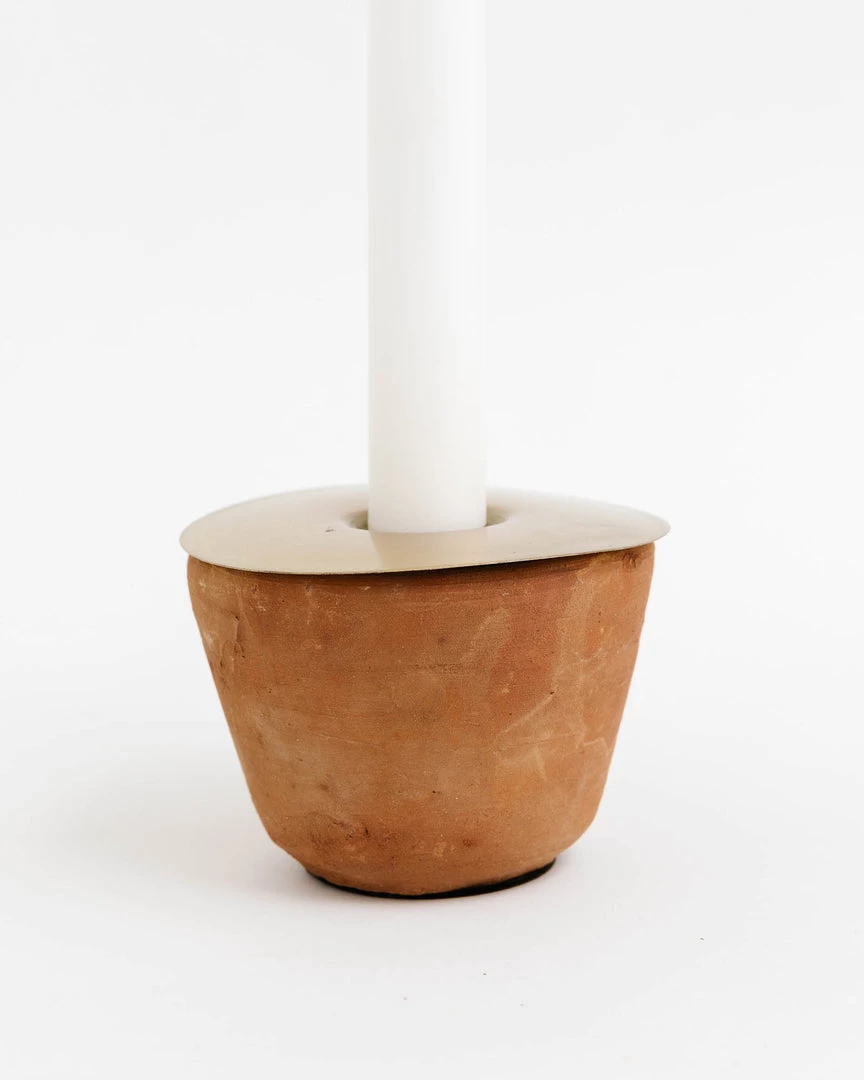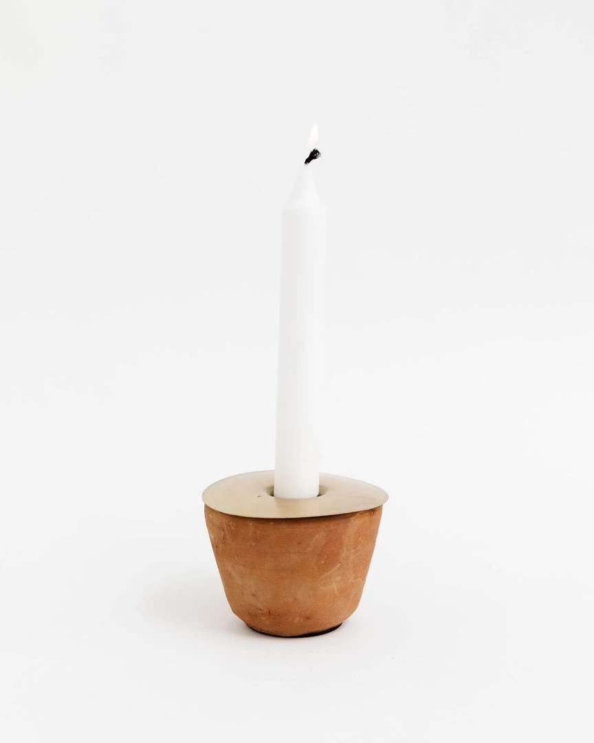 This unique taper holder holds a tapered candle and can be a bud vase or hold an air plant due to the removable brass top.