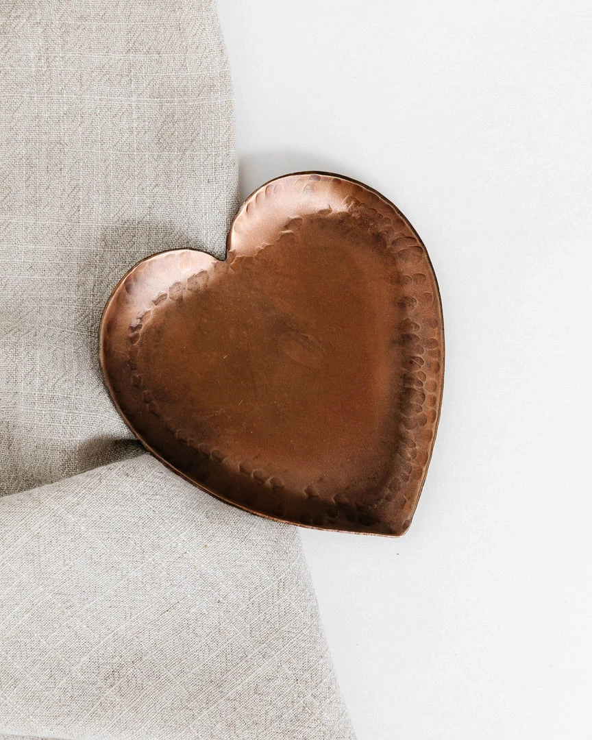 Use this minimal copper plated heart dish on any desk or table to hold keys, coins, paperclips, jewelry or any other little trinkets you want to keep handy.
