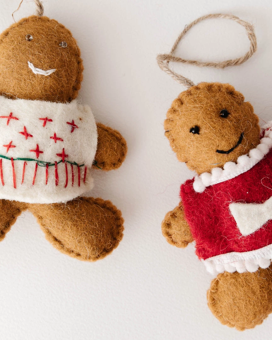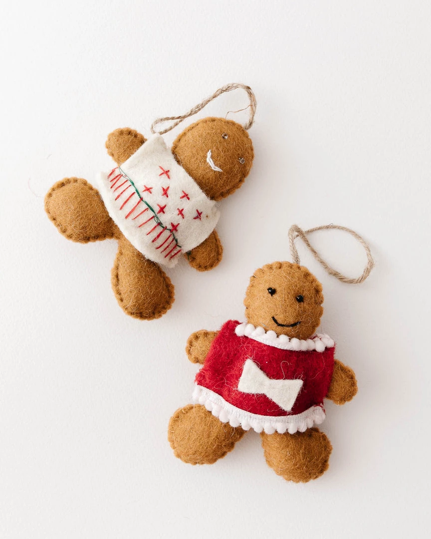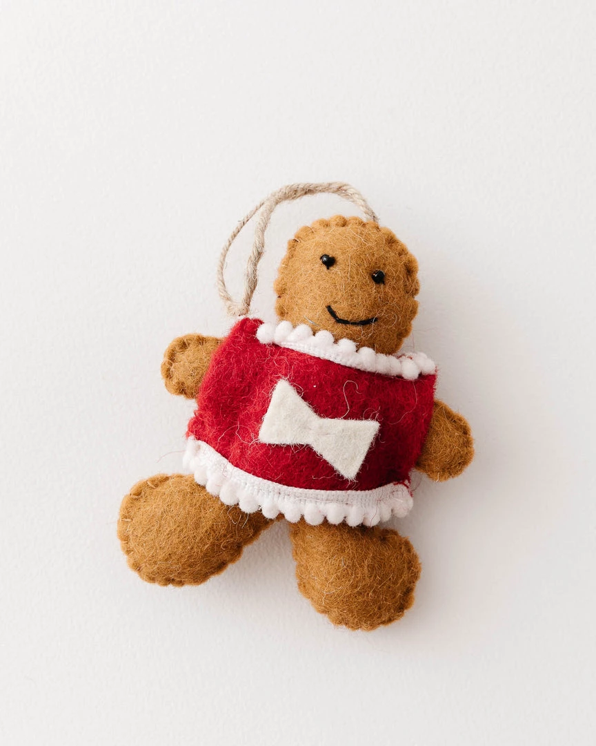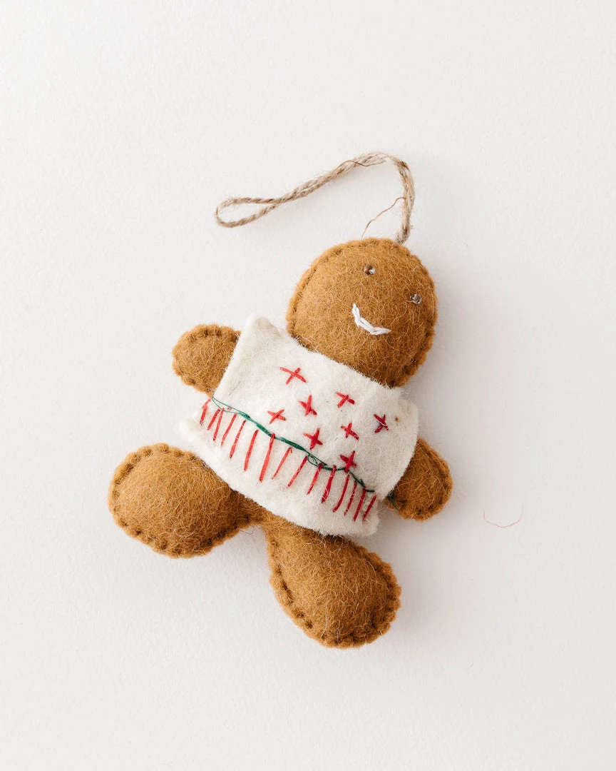 One of the best holiday icons is the gingerbread man! Enjoy this felted version on your tree or garland that perfect touch of CUTE. Hand sewn and embellished for that special felt feel!