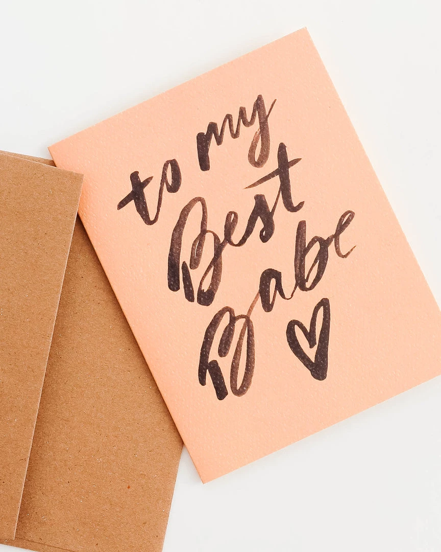 “To My Best Babe”! Kraft envelope is included, blank on the inside.