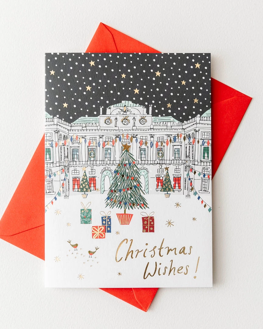 Send a sparkling happy holiday with this beautiful gold foiled card. The card is cello wrapped with a red envelope, blank inside.