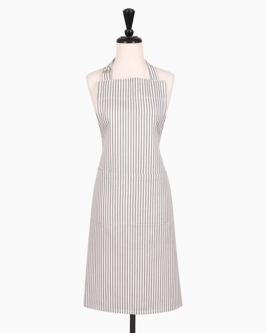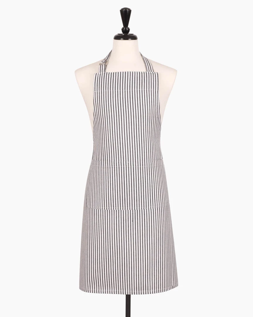 This classic noah stripe apron has a front utensil pocket for convenience around the kitchen. Pairs perfectly with the Noah oven mitt + pot holder!