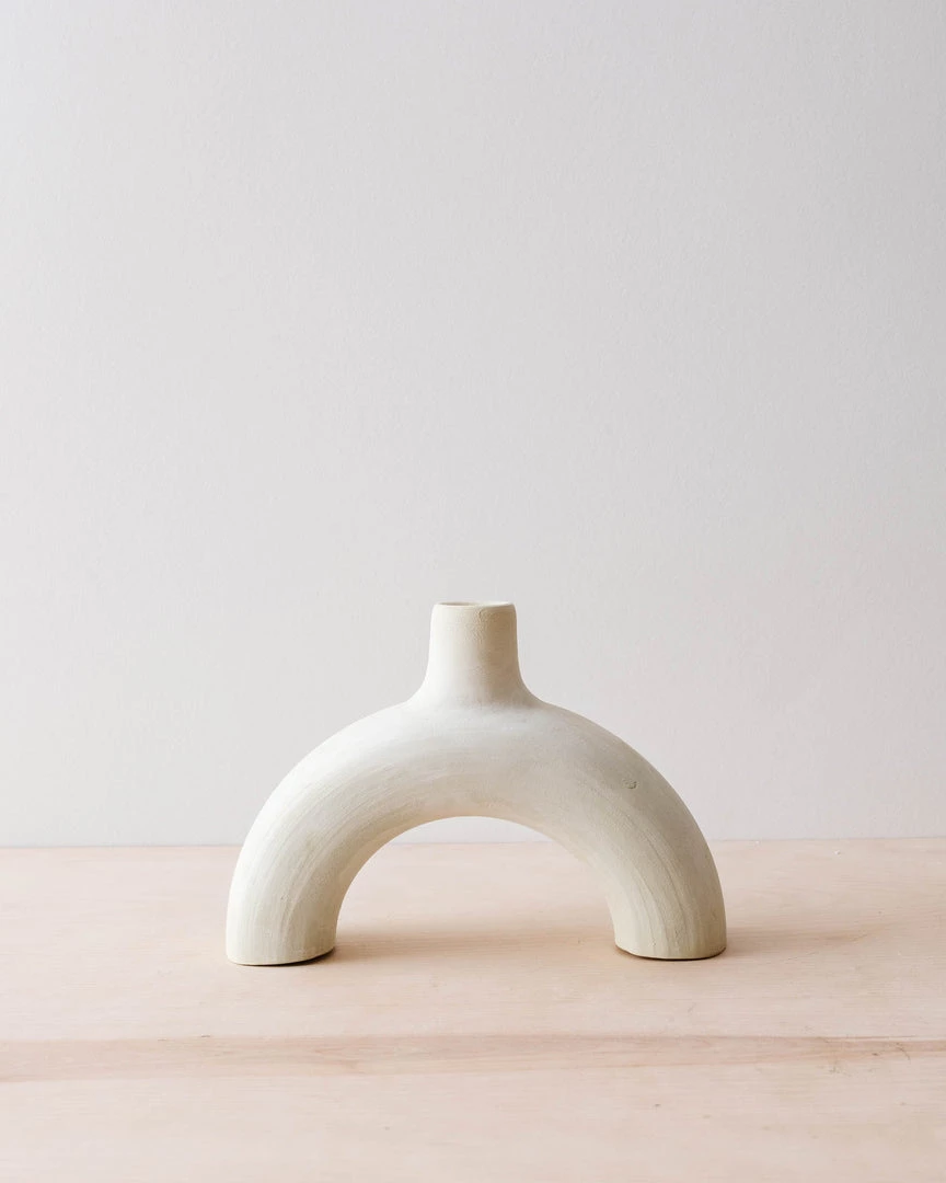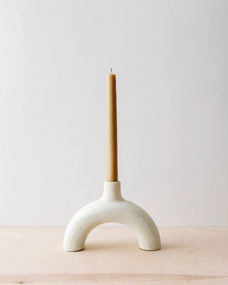 The unique abstract shape gives this raw ceramic taper candle holder the modernist feel we love. Perfect as a statement or paired with other tapers. Each piece is handmade and unique, so you’ll find imperfections and marks on them. The traces of craftsmanship are noticeable on each piece.