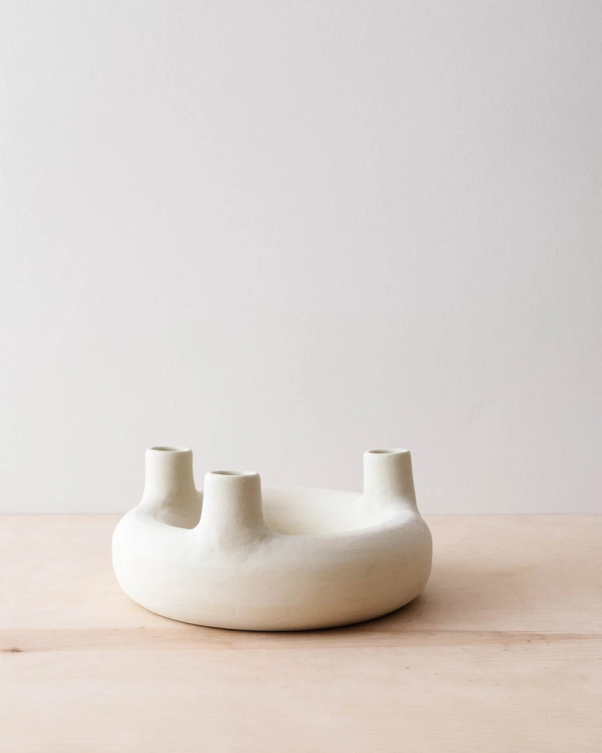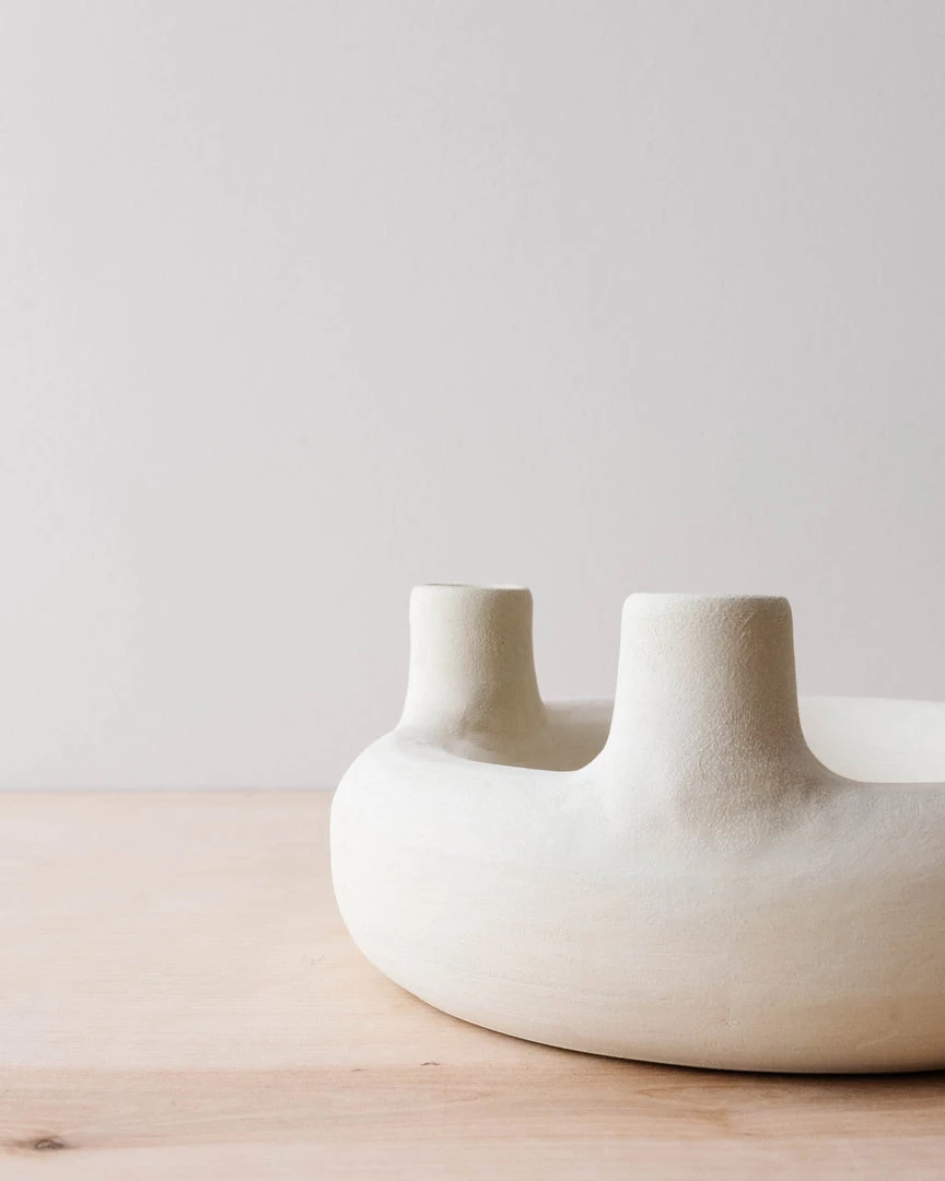 The unique abstract shape gives this raw ceramic taper candle holder the modernist feel we love. Perfect as a statement or paired with other tapers. Each piece is handmade and unique, so you’ll find imperfections and marks on them. The traces of craftsmanship are noticeable on each piece.