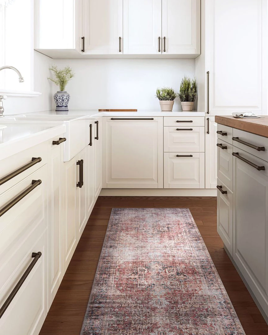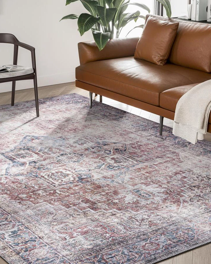 This distressed, classic area rug has the ideal blend of well-loved charm and vintage-inspired style. The brick and cream colors, however, give this rug a touch of modern aesthetic, easily merging with any existing style in your home.