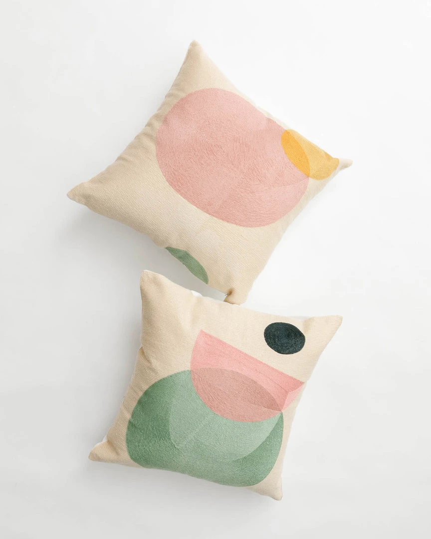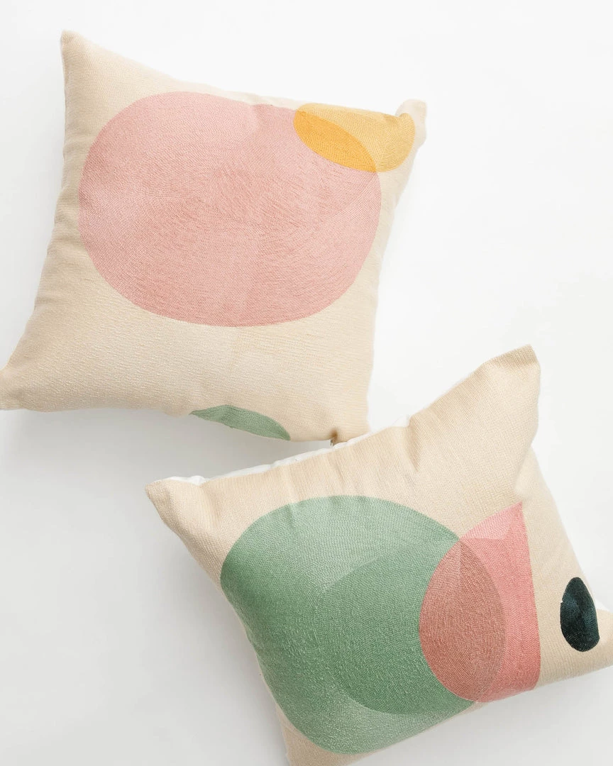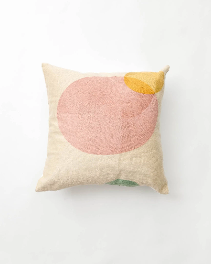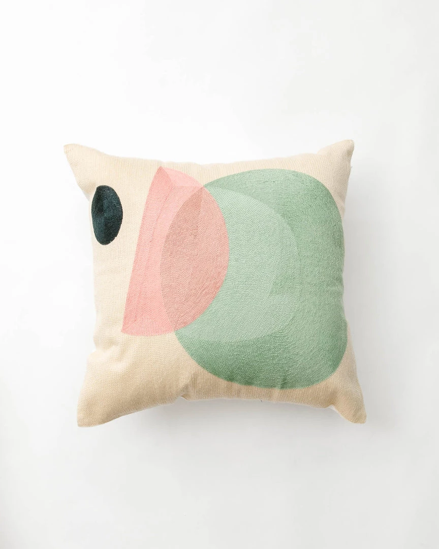 This lively pillow cover features unique shapes and smooth appliqué. Backed in canvas.