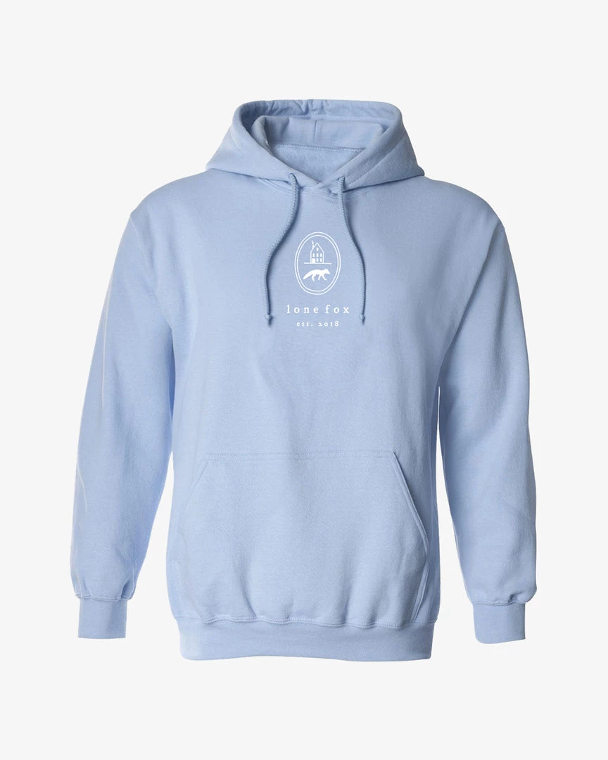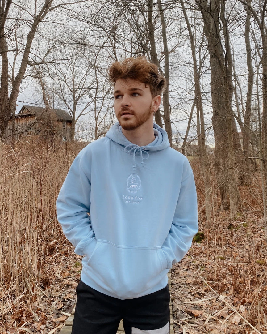 The embroidered logo Lone Fox hoodie in baby blue will keep you cozy out and about or under a blanket watching tv… I don’t judge. It also comes in black!