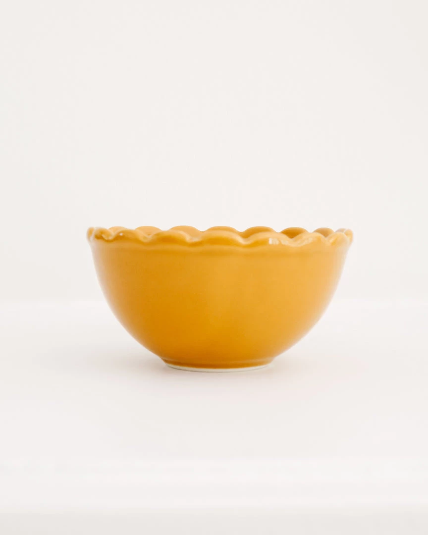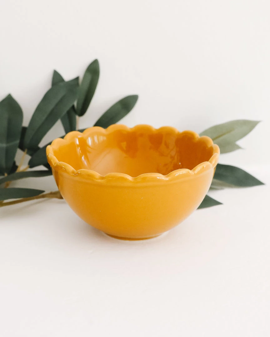 A pop of color and scallops for a statement at the table or buffet. Perfect for sauces, dips or snacks!