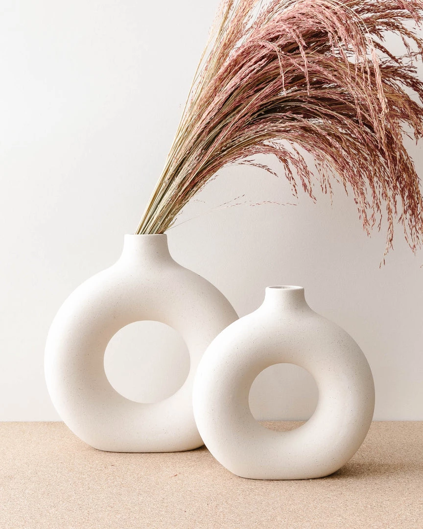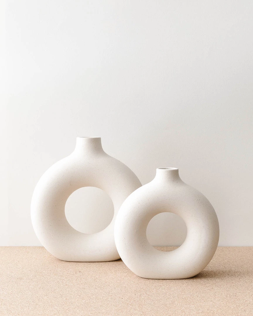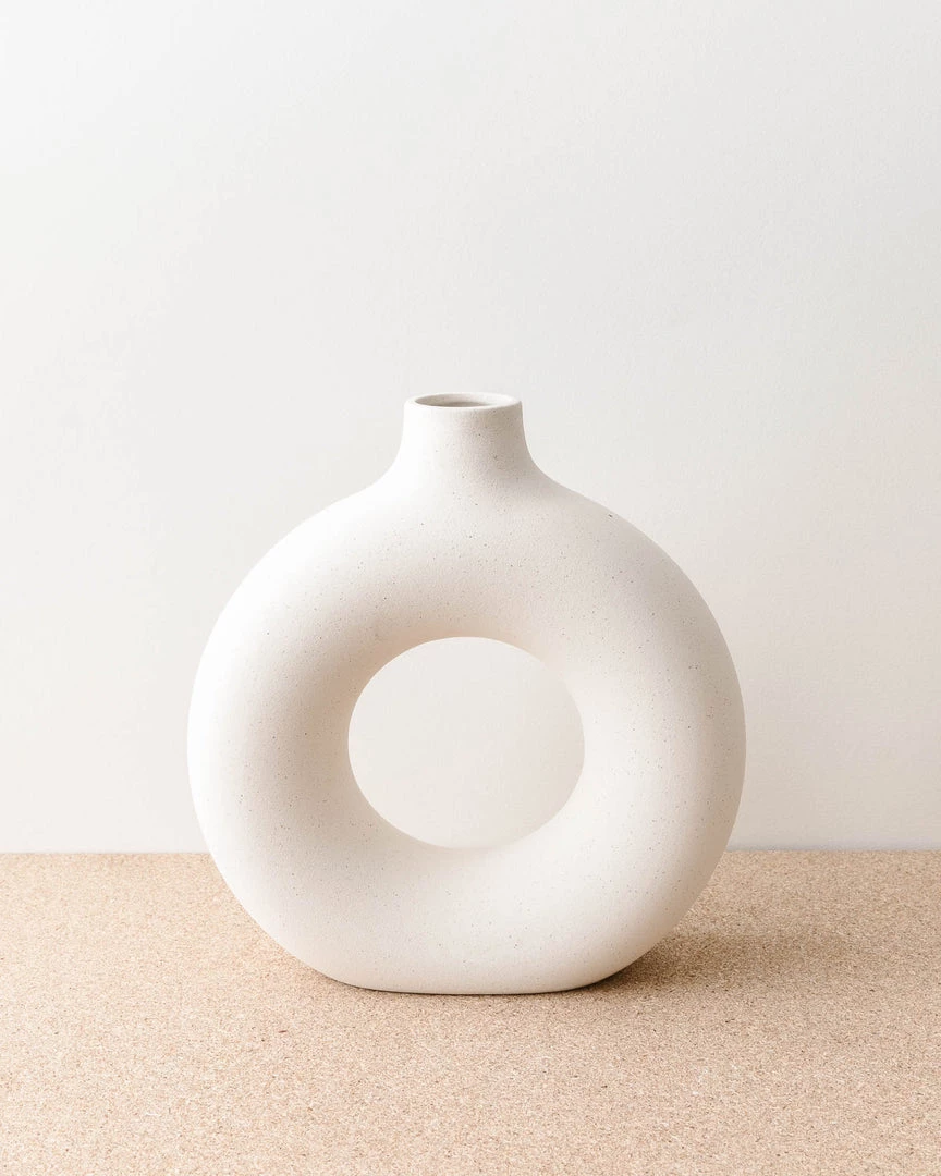 This vase has a round silhouette that makes a modern statement whether standing solo or filled with greenery.