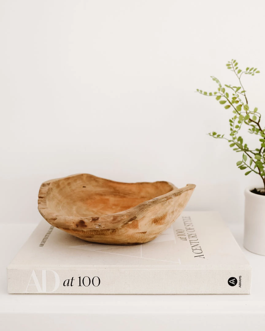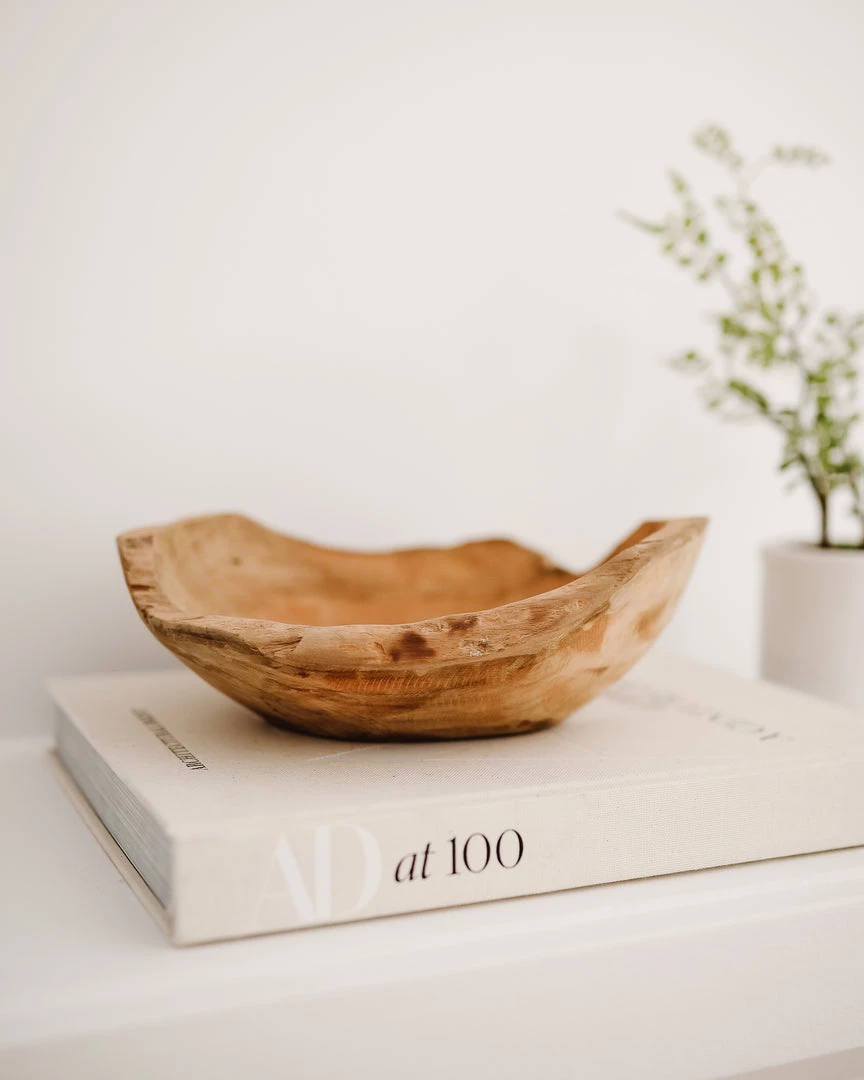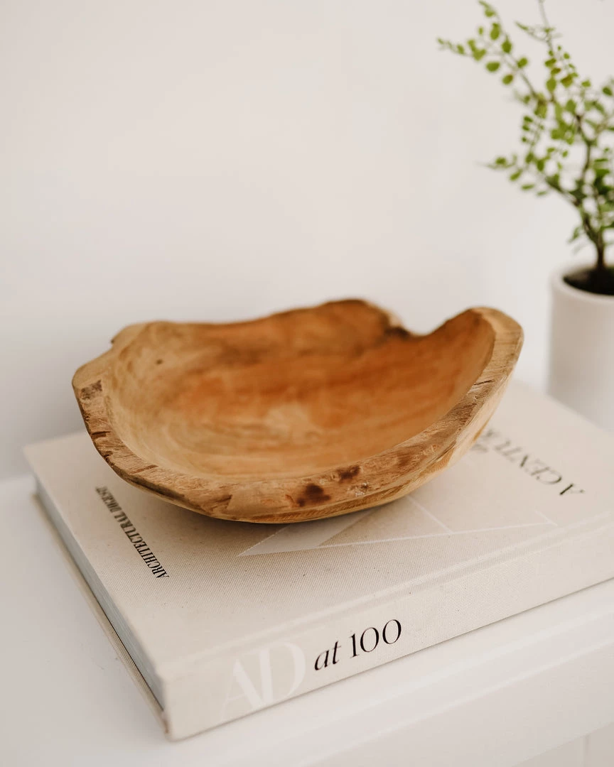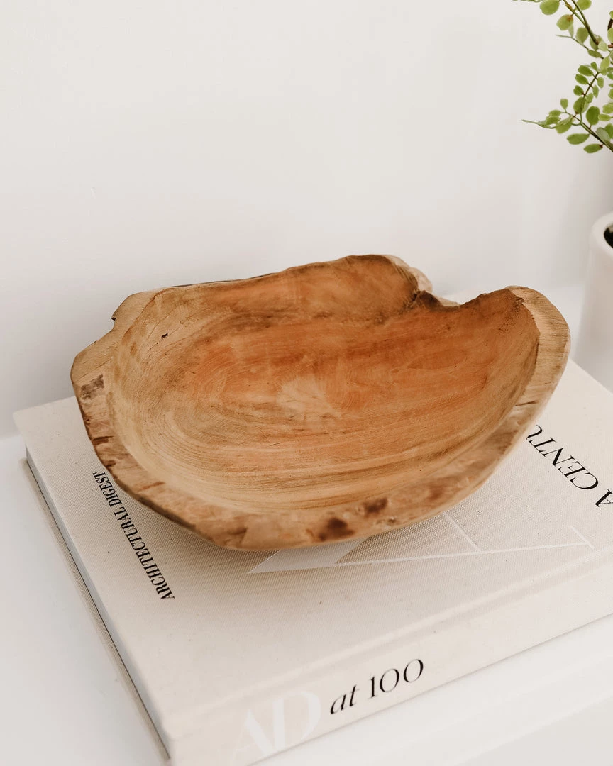 This teak wood bowl brings an organic look to any setting, making it a beautiful centerpiece at the dining table or filled with your favorite fruits and vegetables in the kitchen!