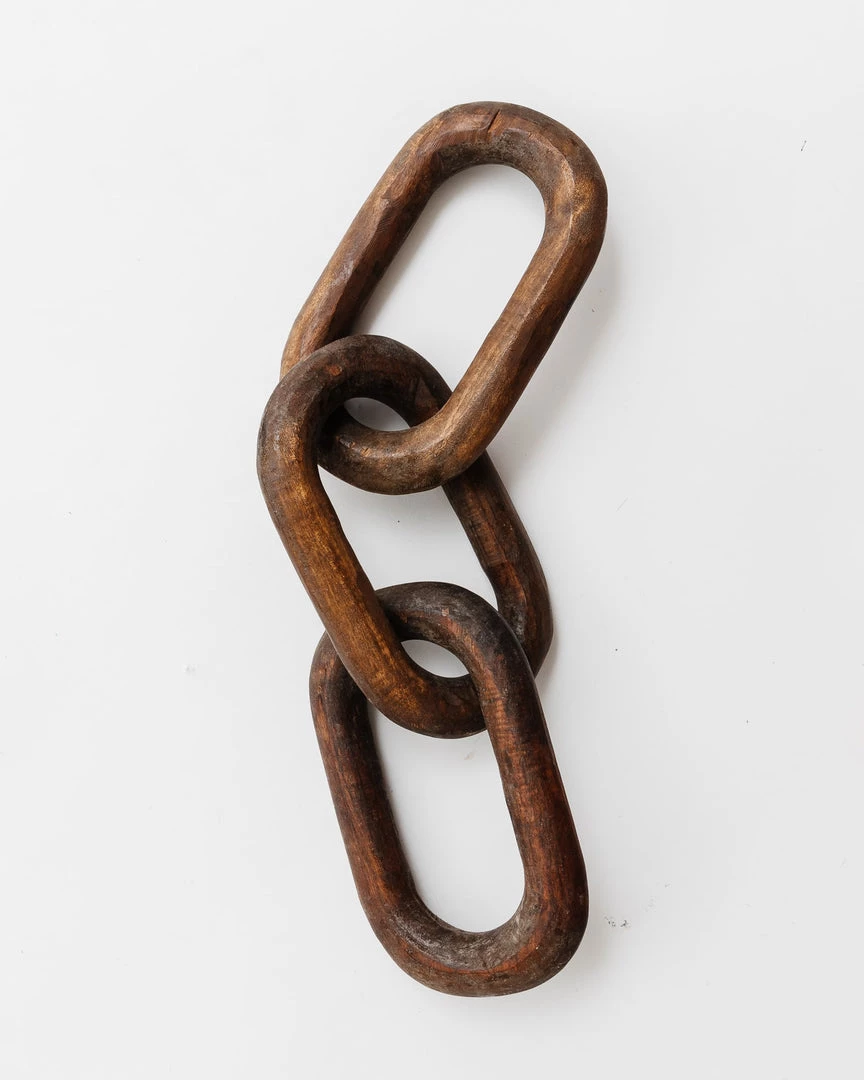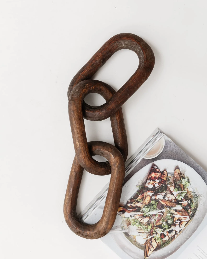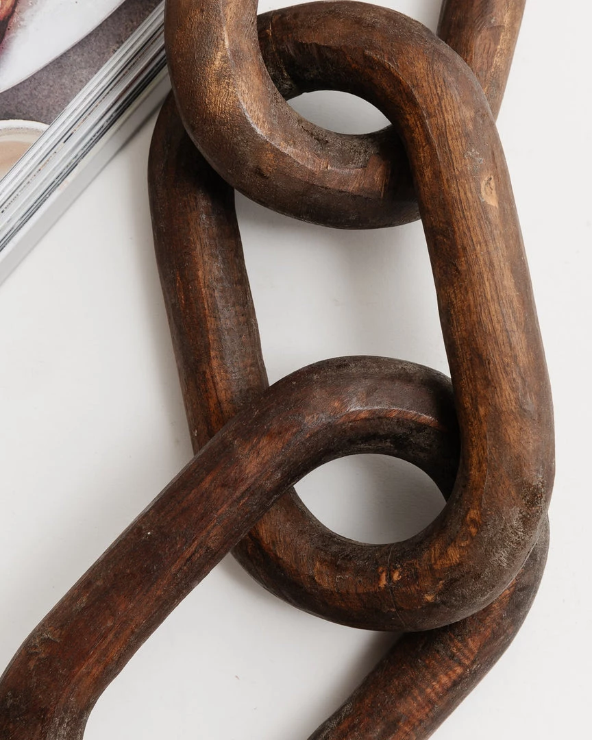 This unique reclaimed wood chain, adds interest and edge to coffee tables, bookshelves, consoles, etc.