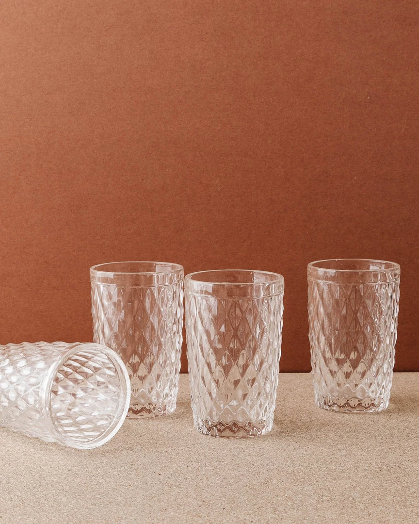 These embossed drinking glasses bring an eclectic, vintage take on the drinking classic. Perfect for dinner parties, celebrations and the next addition to your glassware collection.