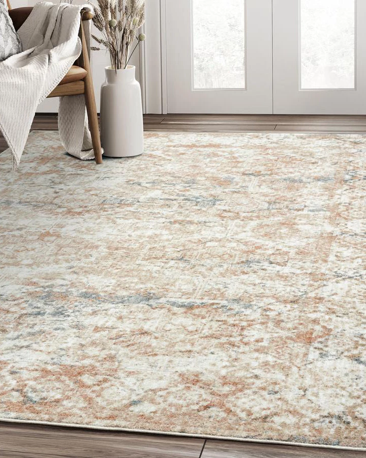 For a bold style that isn’t afraid to make a statement, this contemporary cream and white area rug is for you. The border is perfectly balanced, complete with a patchwork of fabric-inspired patterns. The central shapes are circular and unexpected, lending an air of excitement and energy to any space.