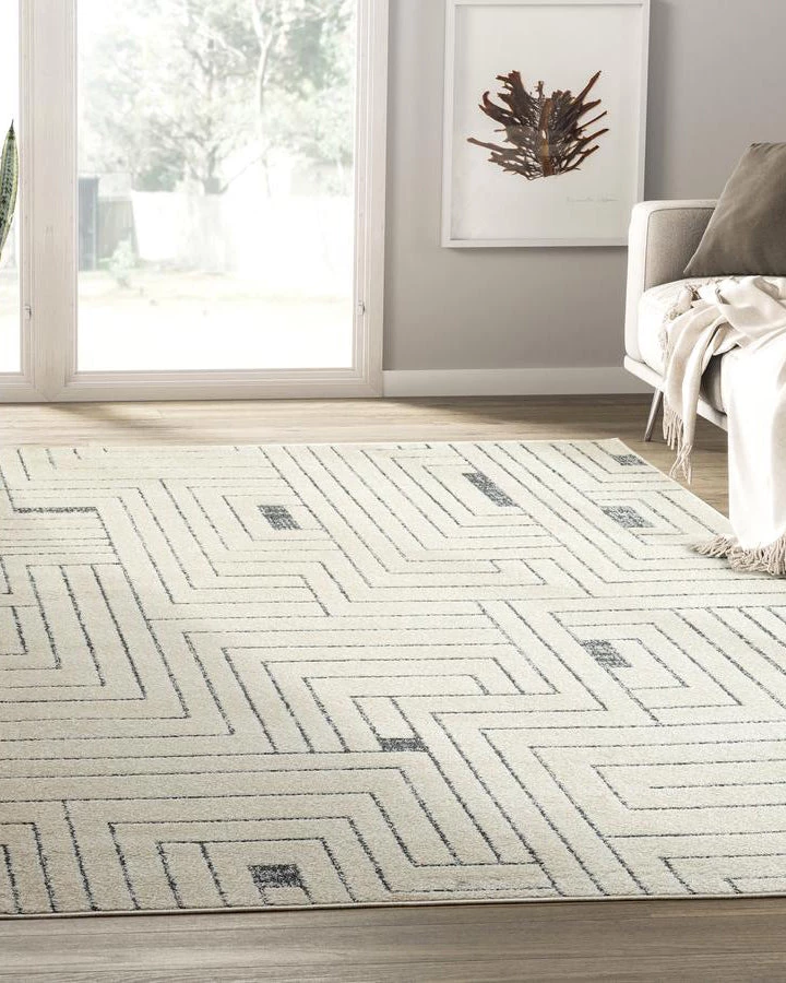 For a design that blends old-world charm with new-world style, this farmhouse area rug is the perfect fit. Inspired by the geometric linear designs of contemporary art styles, this rug resembles a labyrinth with its balance and rectangular shapes.