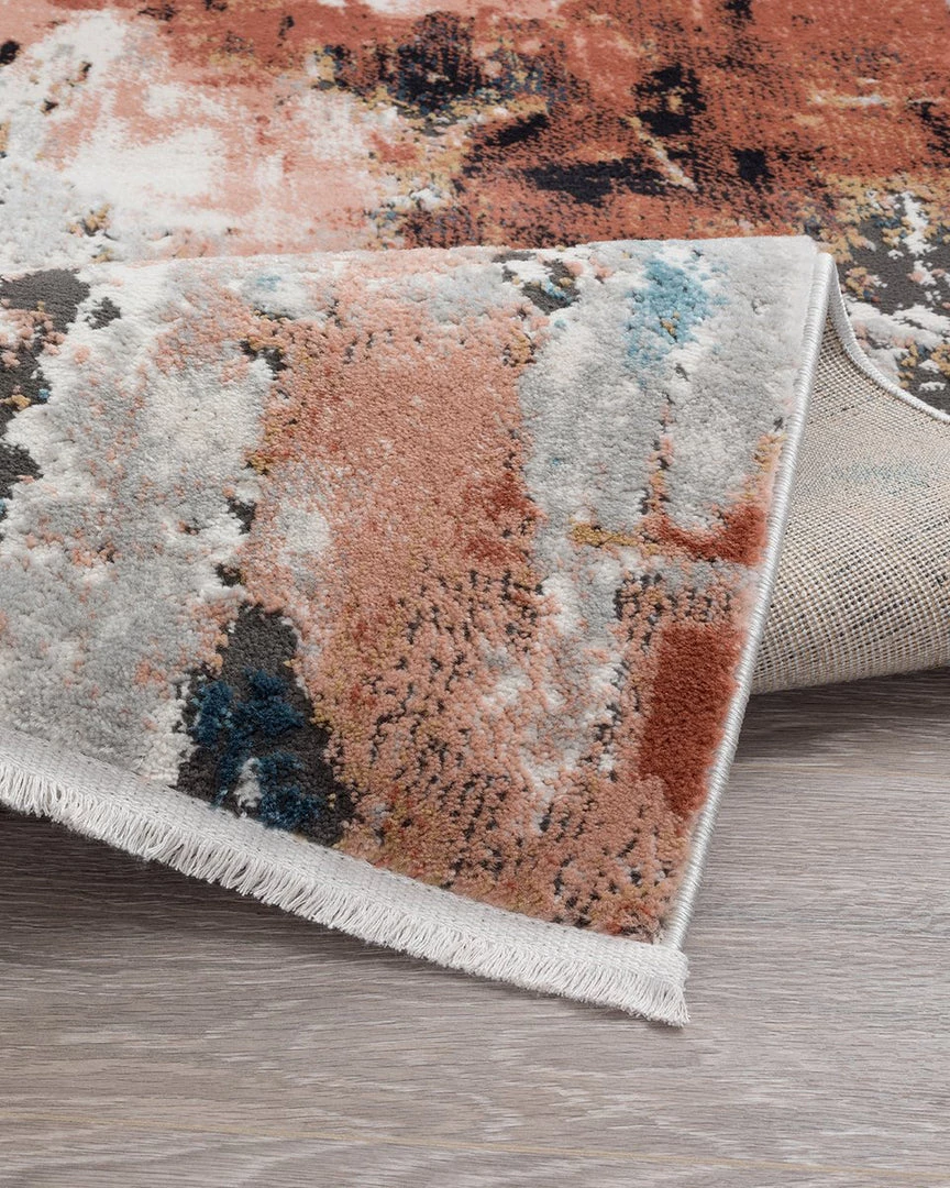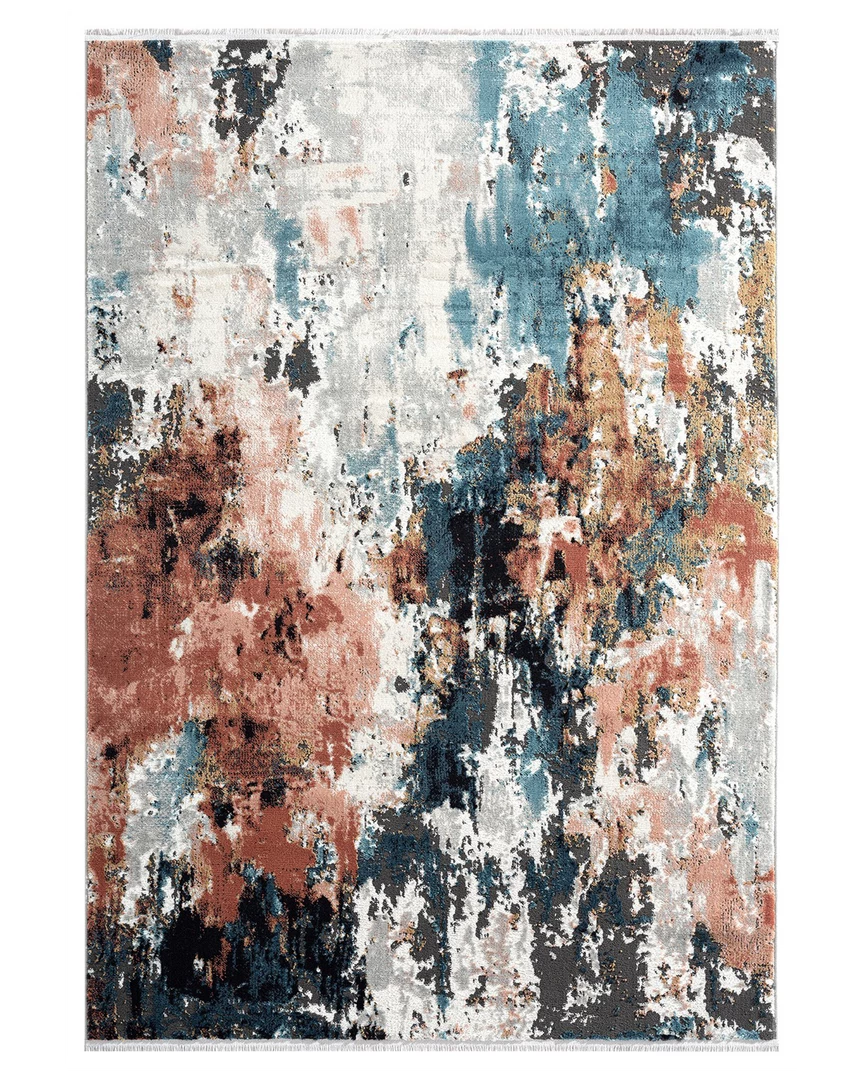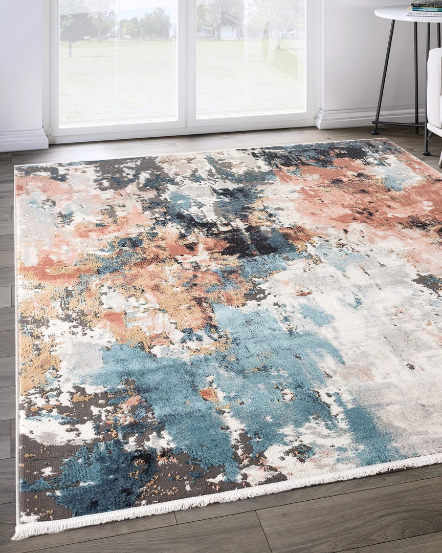 When you want to make a statement in a room go for a modern rug with a bold, chunky design for emphasis. Weaved to look like an abstract painting with strokes of dark teal, copper orange and dark gray