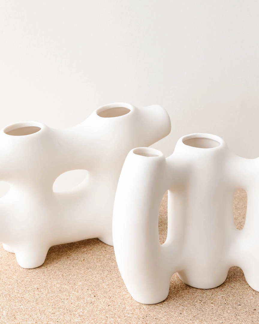 The simplistic irregular elegance speaks for itself. Perfect for your dried flowers, as a bespoke centerpiece statement or as a stand alone expression of art, this alluring vase collection is sure to enhance any space.
