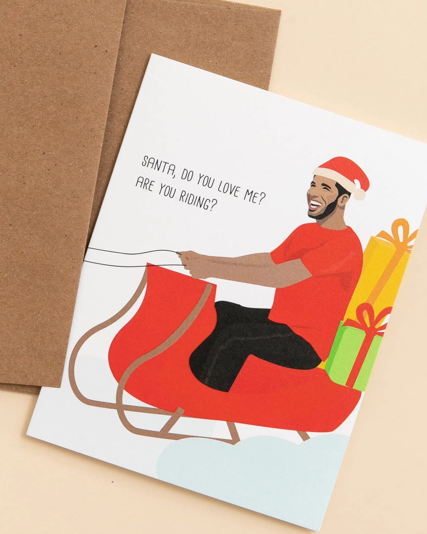 Grab this card for pop culture lovers. You’ll make their holidays! Kraft envelope is included, blank on the inside.