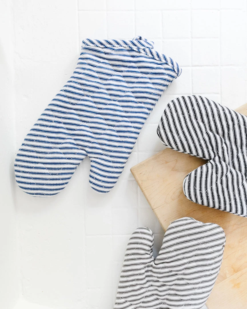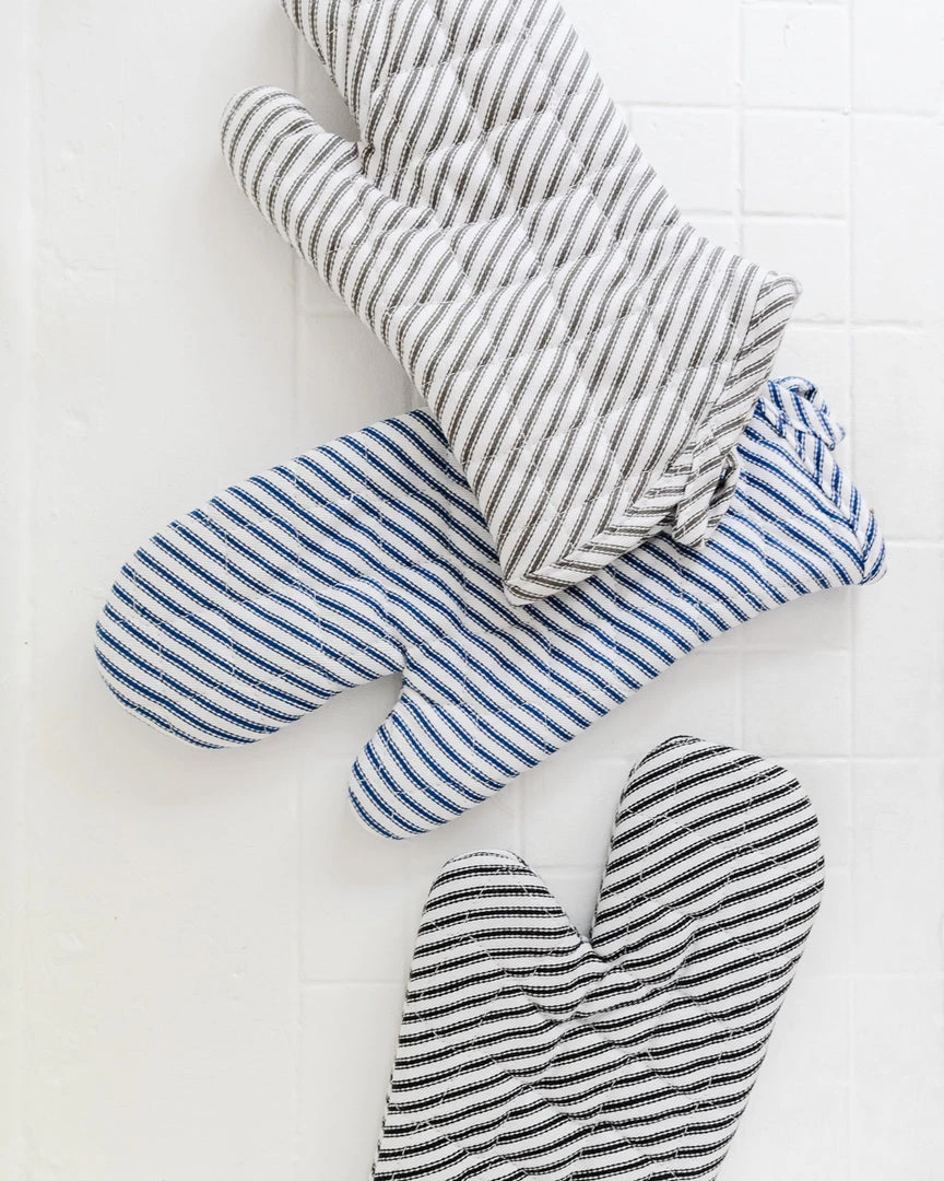 Keep your hands safe and comfortable with these trendy, striped oven mitts! Perfect for handling almost anything that can go into the oven and they look great on display.