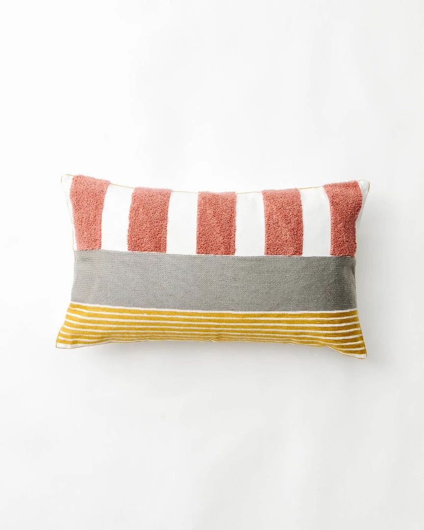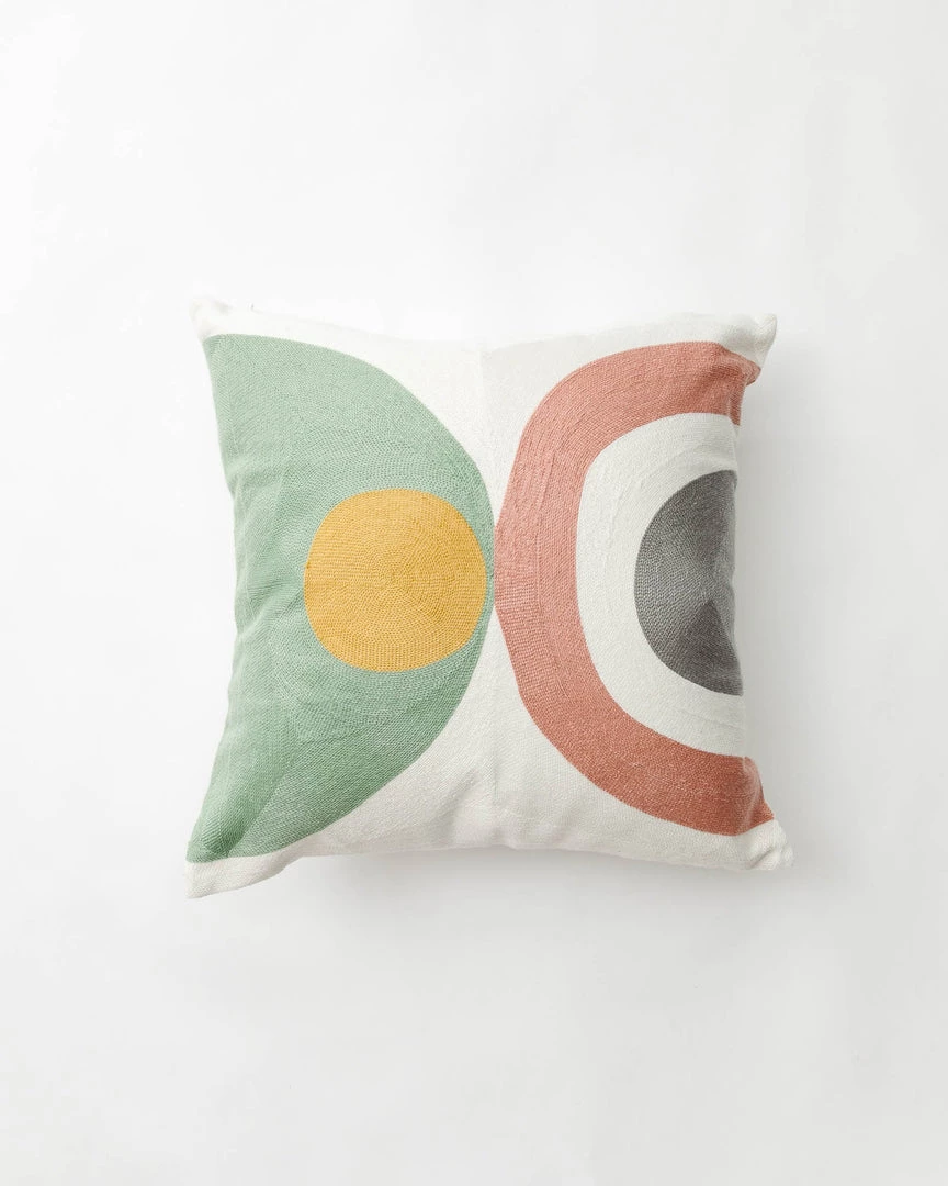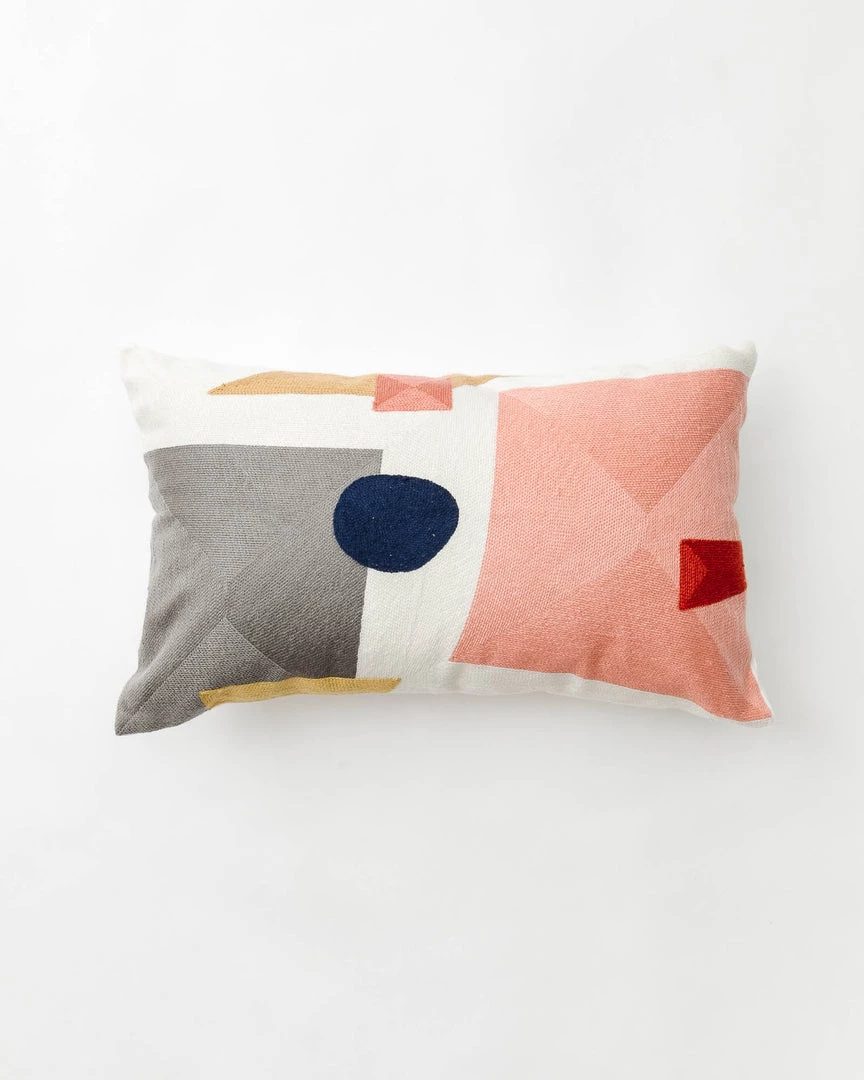Saturate your space with mixture of tones and abstract shapes. This embroidered throw pillow instantly softens any seating area with plush dimension. Backed in canvas