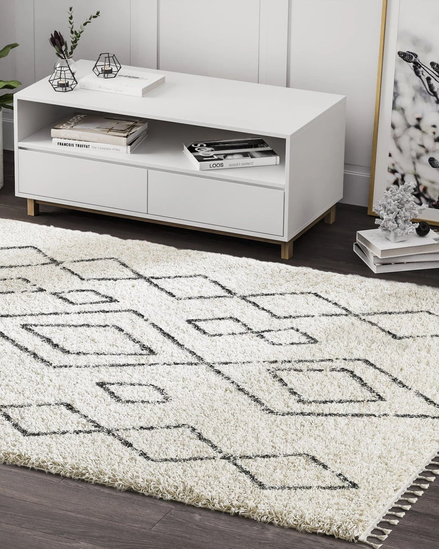 Drawing on traditions from Moroccan tribes, this Riley Moroccan diamond print area rug is modern enough to match any interior design style. The contemporary colors of ivory and grey match today’s modern aesthetics, blurring the lines between the old and new worlds of style.