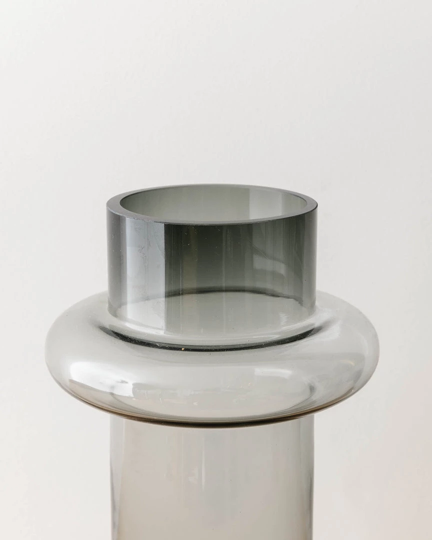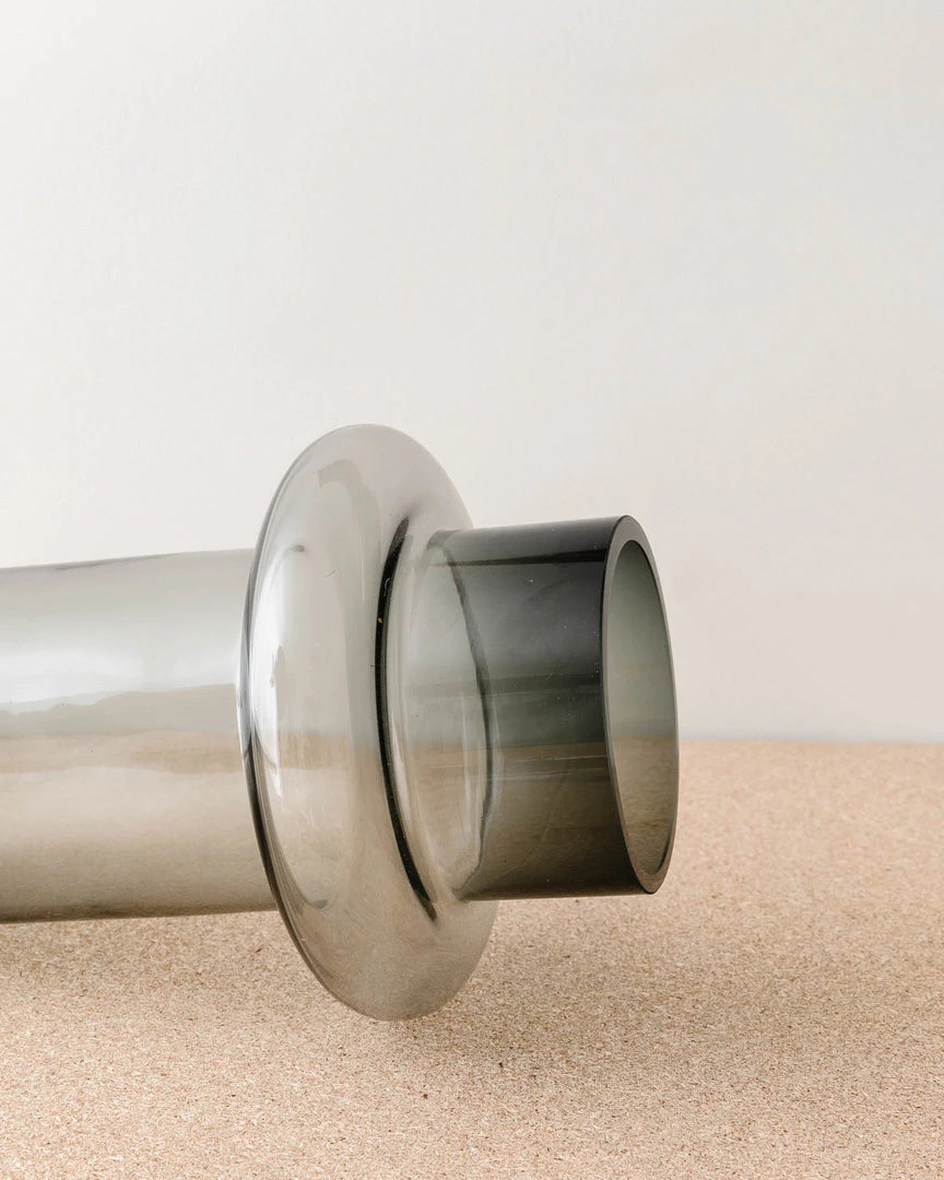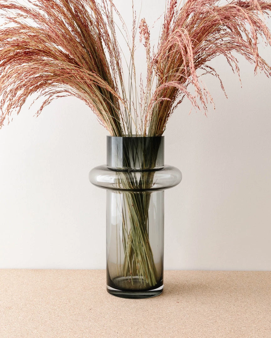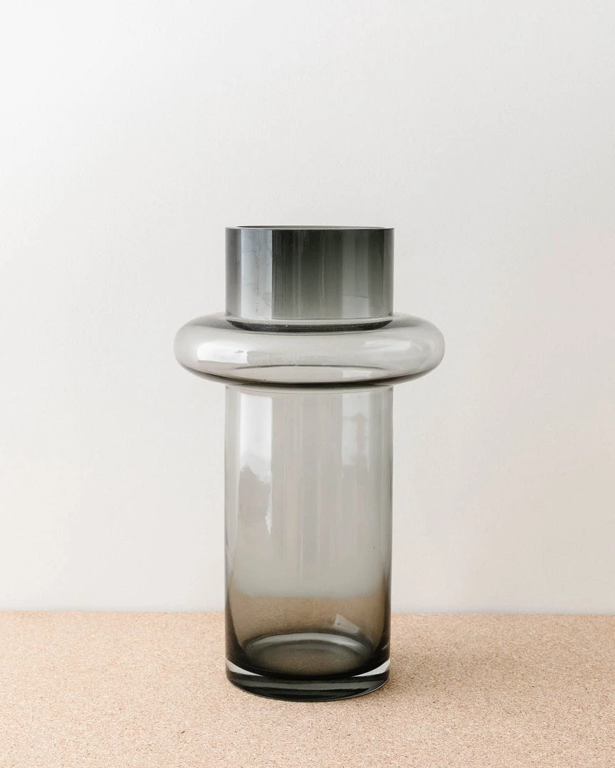 Invite color into your home with this smokey glass vase. Featuring a unique rounded design, style on its own or with beautiful florals.