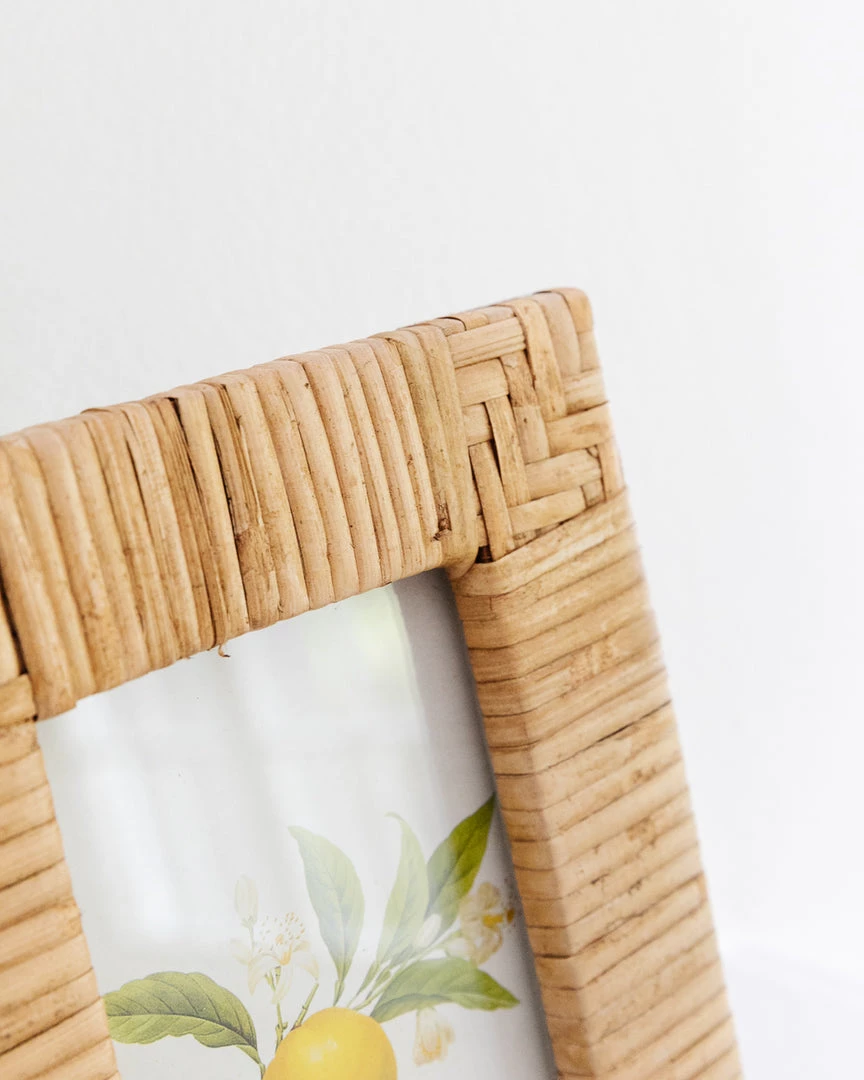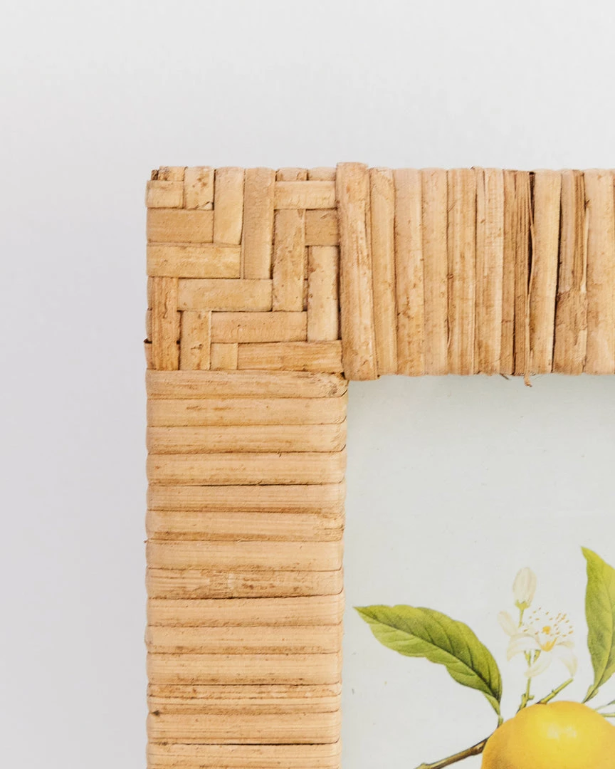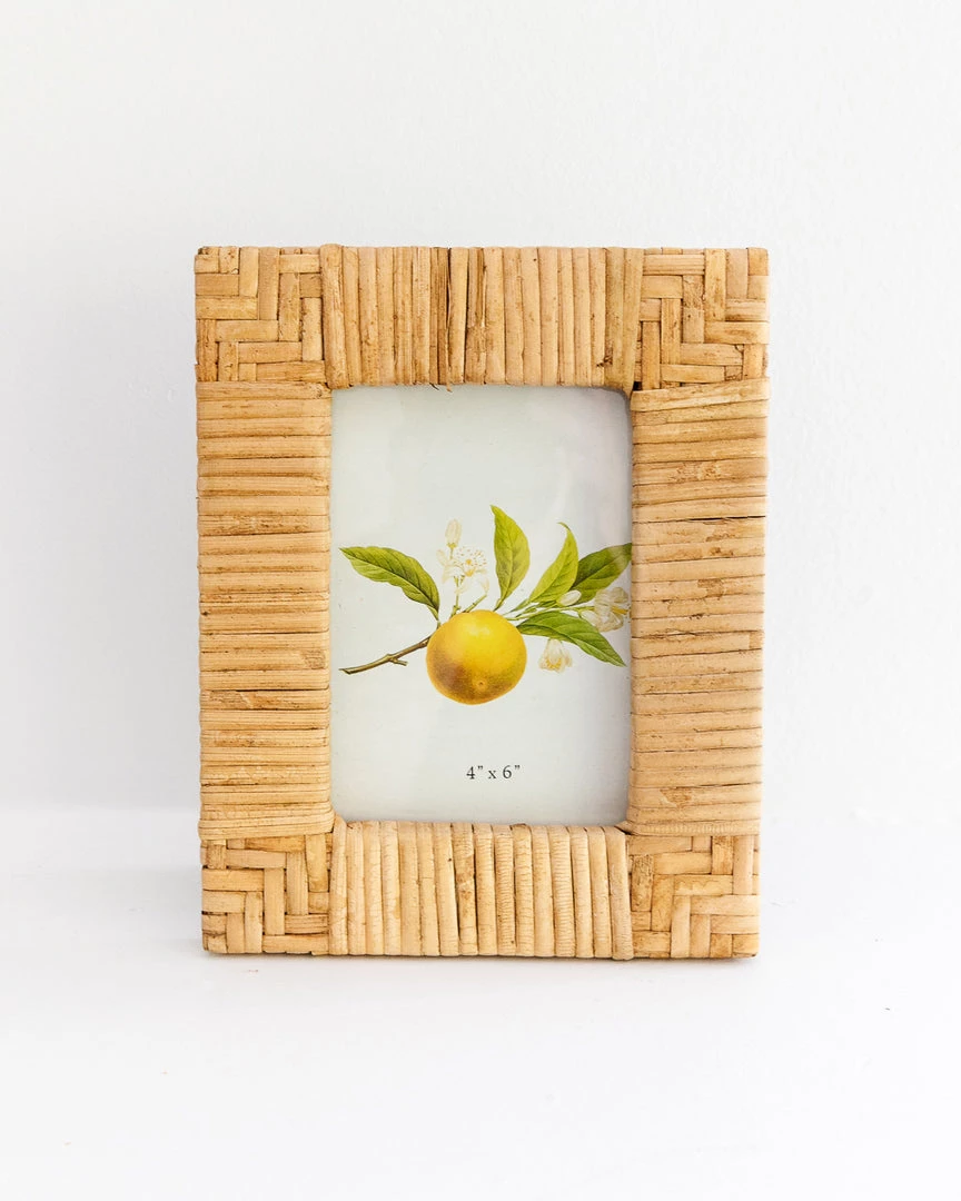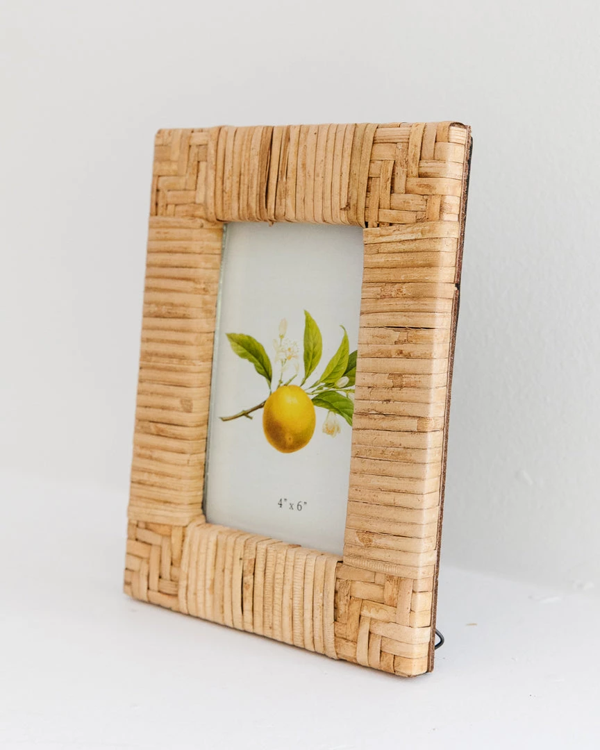 Put your favorite memories on display in this rattan photo frame. The hand woven rattan construction is elegant for tabletop display.
