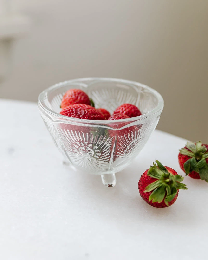 This vintage inspired glass footed bowl makes a beautiful centerpiece filled with colorful fruit or use it on a buffet/table for serving.