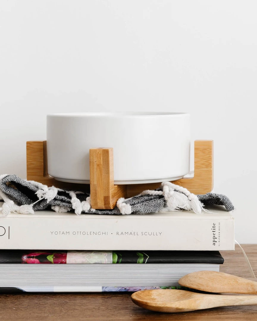 Deep enough to be used as a pet bowl but small enough to store on the kitchen counter as a catch all!