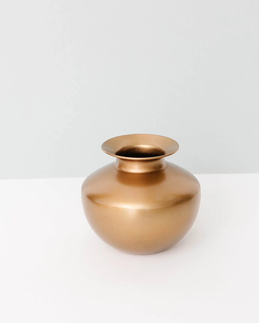 Take a basic bouquet and make a statement with this satin brass finish lota style vase. The unique shape and brass color will make your blooms even more beautiful. Whether it holds a single stem or few blooms this vase is sure to make a statement.