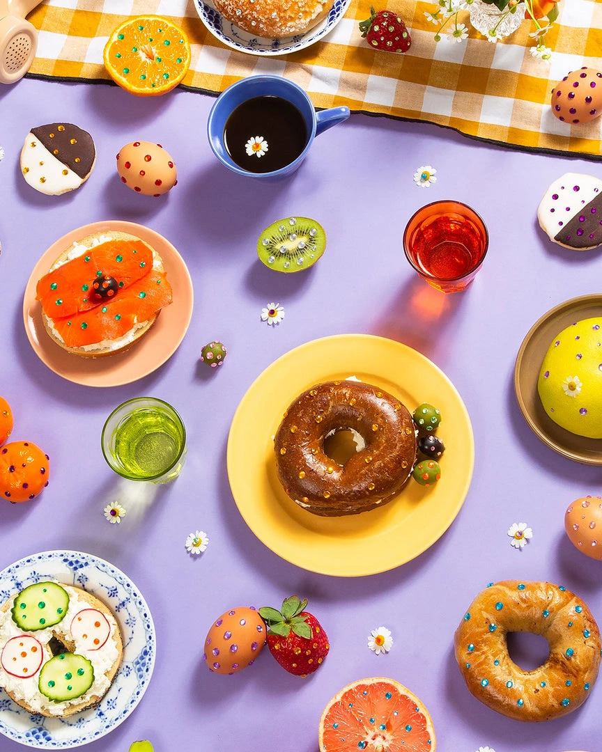 Sparkly strawberries. Bedazzled bagels. Rhinestoned olives. Tiny, tiny daisies. This smorgasbord is truly the breakfast of champions. It’s just like the old saying: all that glitters is…a truly delightful brunch puzzle.